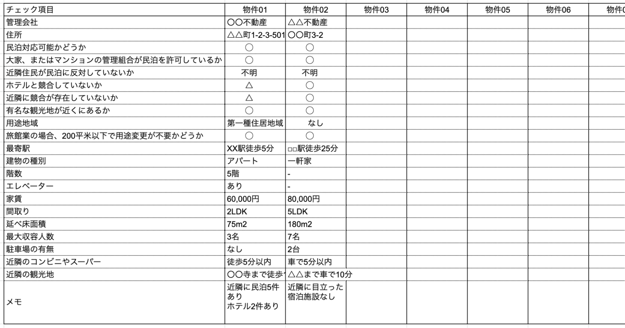 (例)10件調査した上で物件を決める