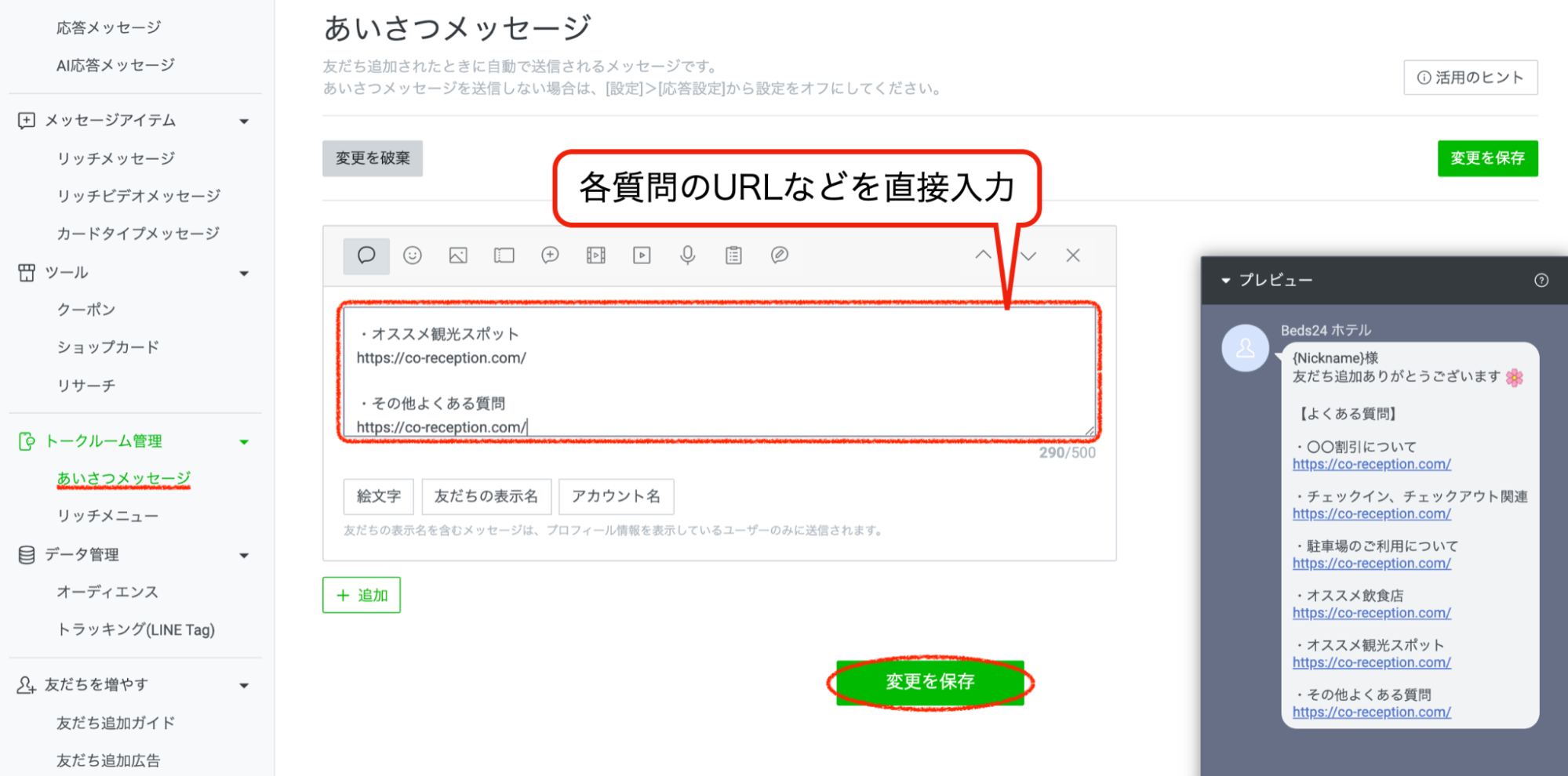 あいさつメッセージに[よくある質問]を載せましょう