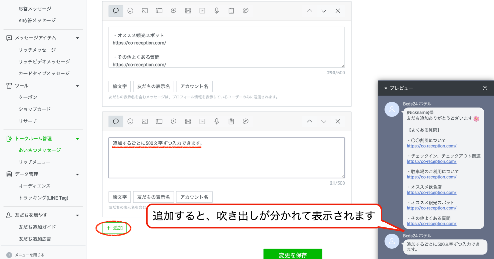 文字数が足りない場合は、[+追加]を押して追記しましょう。