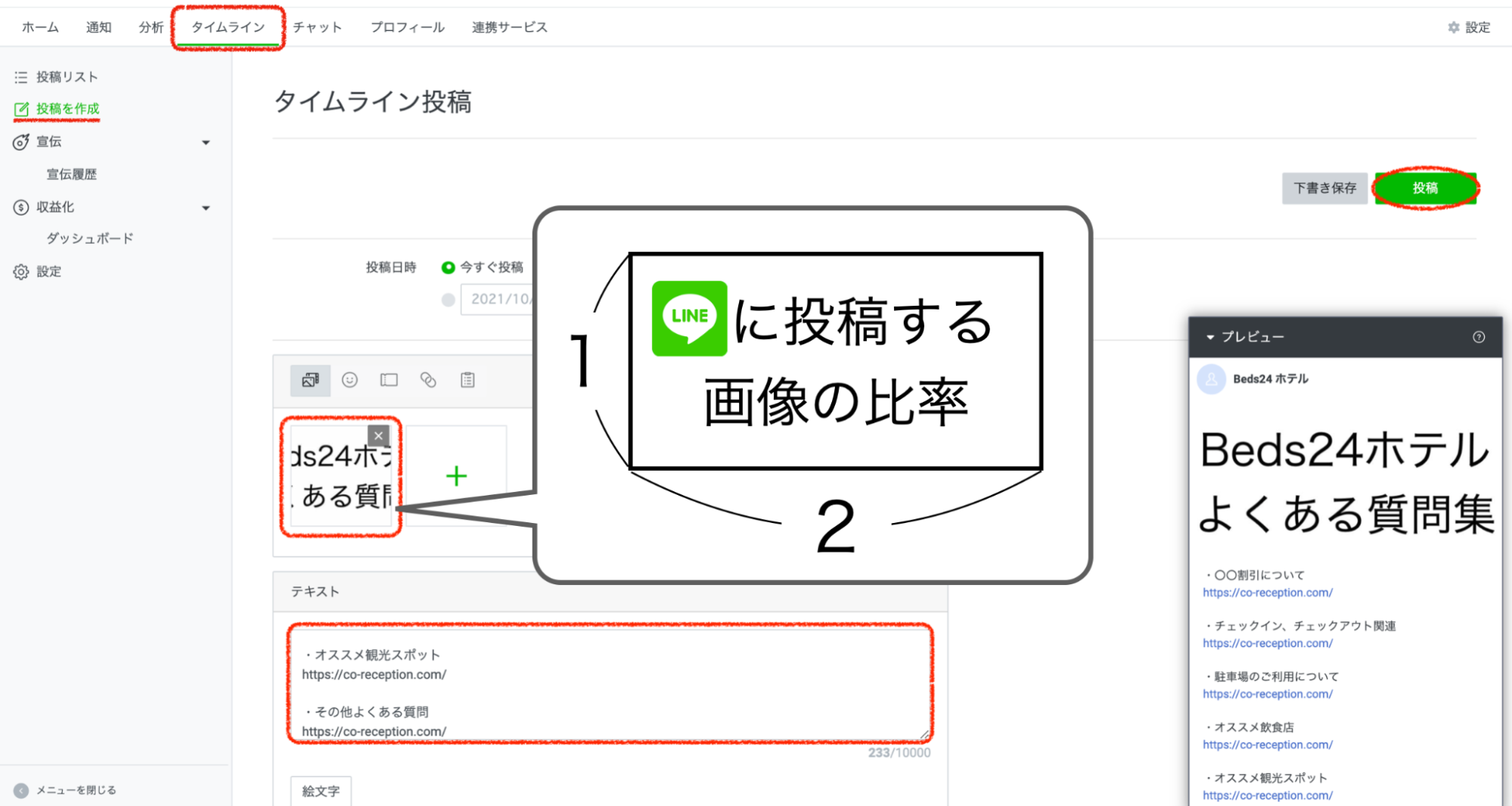 その後、[投稿]ボタンを目立たせるように画像を加工してください。
