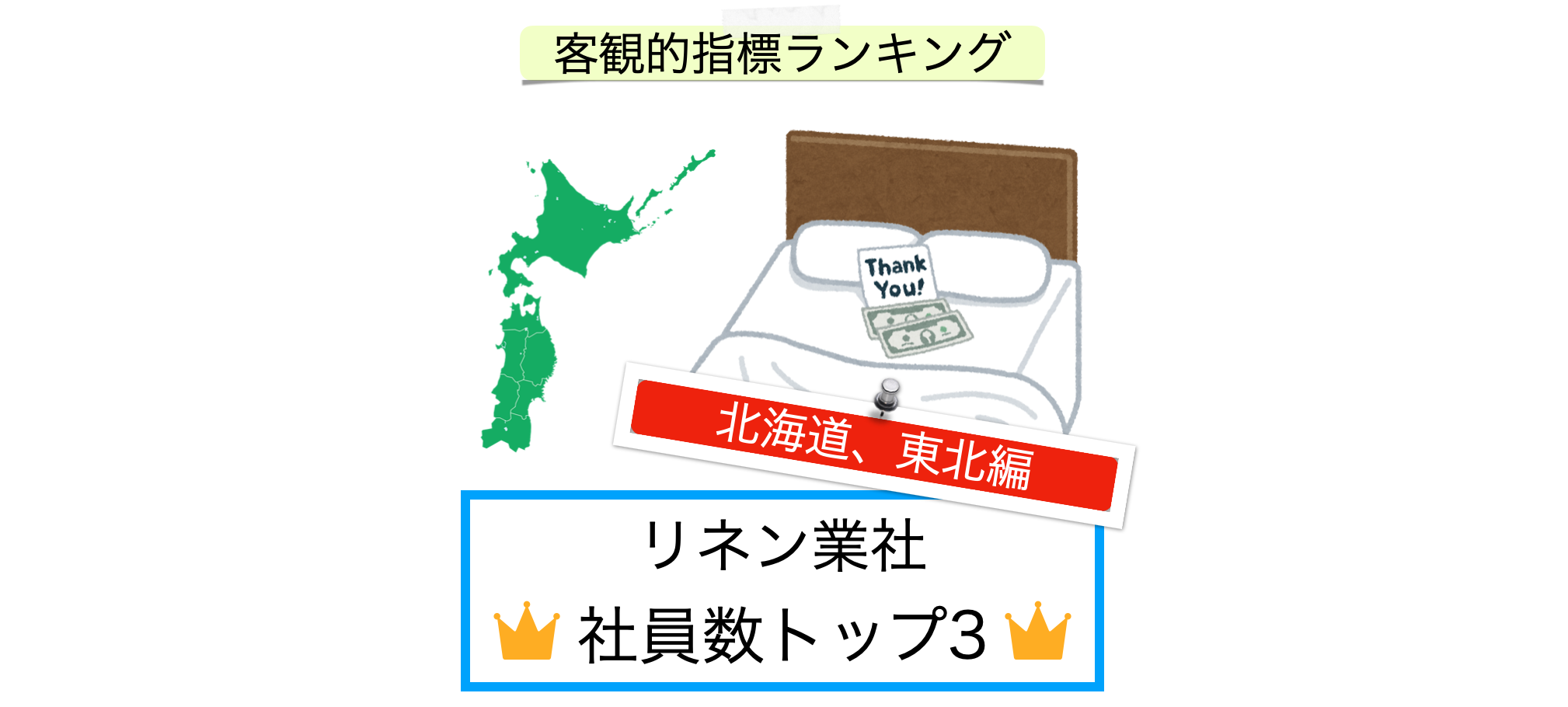 都道府県別 ホテルリネン業者 社員数トップ3(北海道・東北)