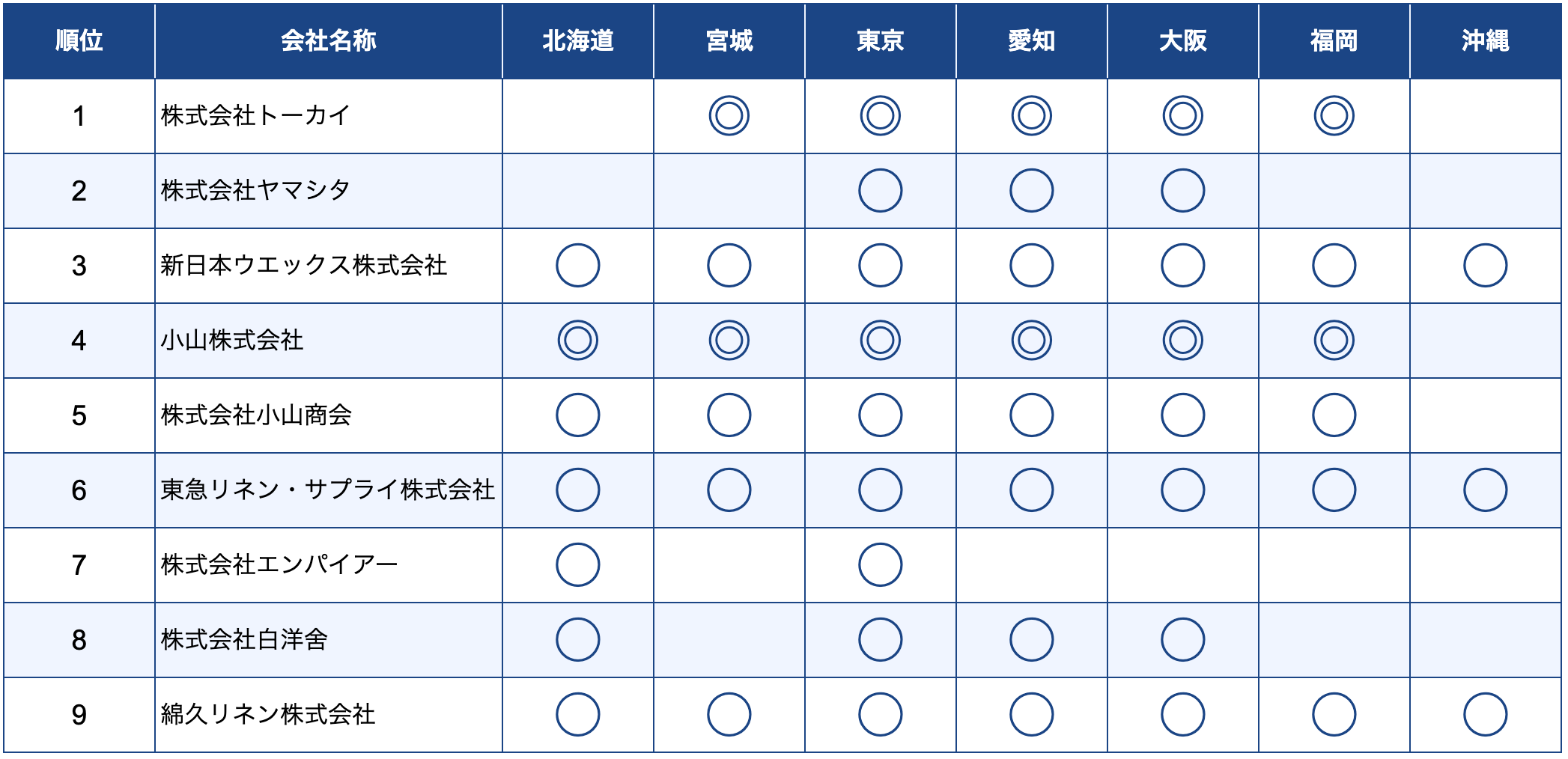 全国対応可能 ホテルリネン業者 社員数トップ9