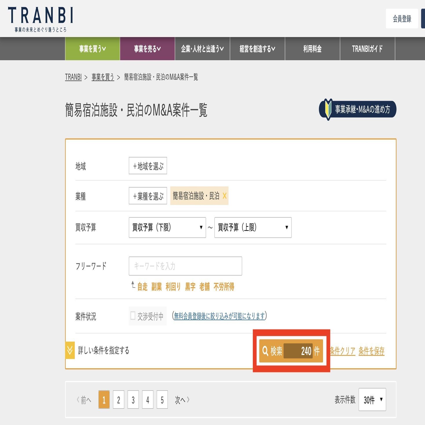 2024年6月から9月にかけて、M&A仲介サイトTranbiの「簡易宿泊施設・民泊のM&A案件一覧」