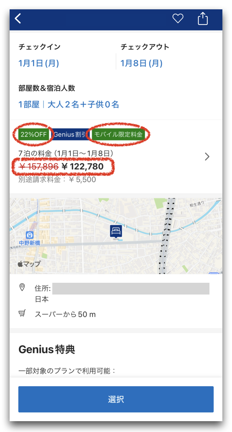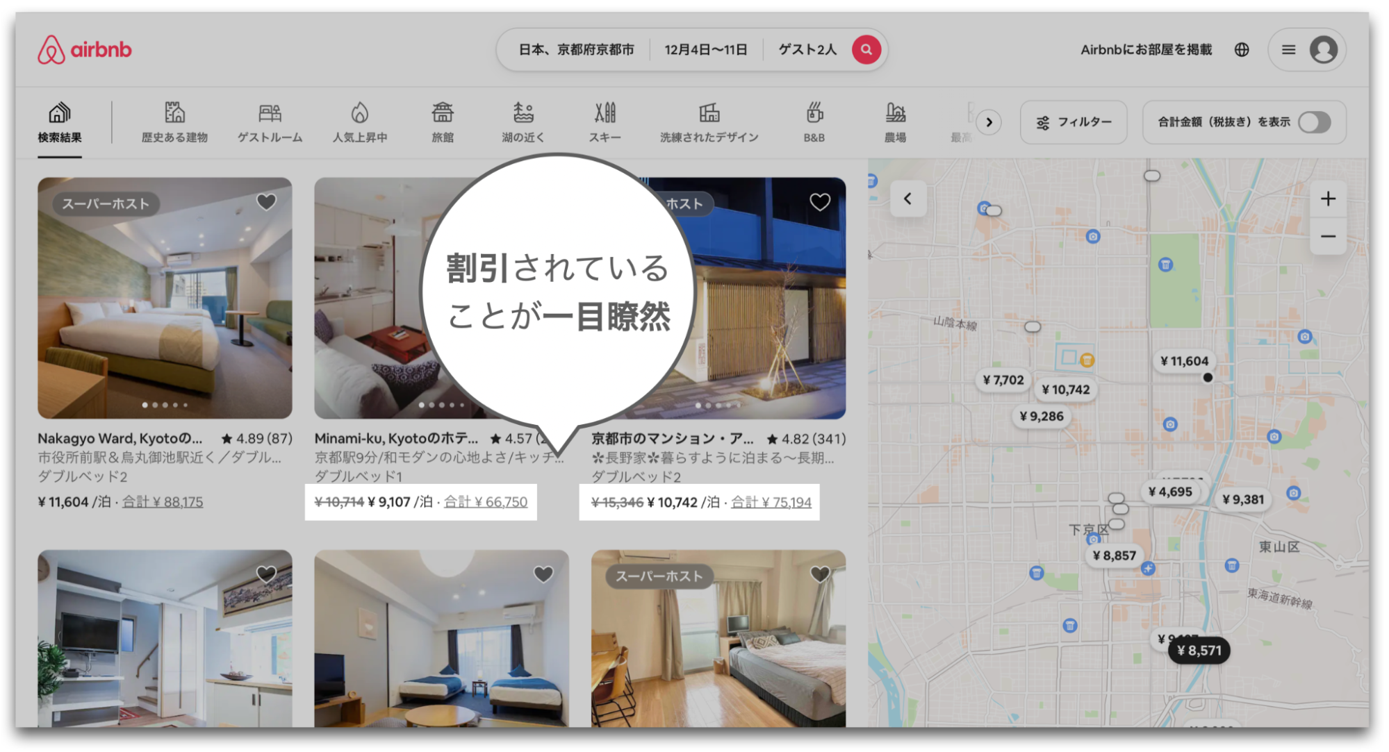 検索画面のリスティング一覧では、割引されていることが一目瞭然です。