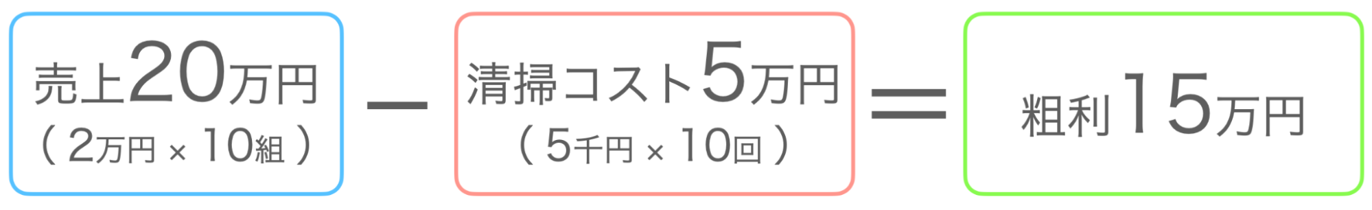 清掃は少ない回数で済むため、粗利は19万円になります。