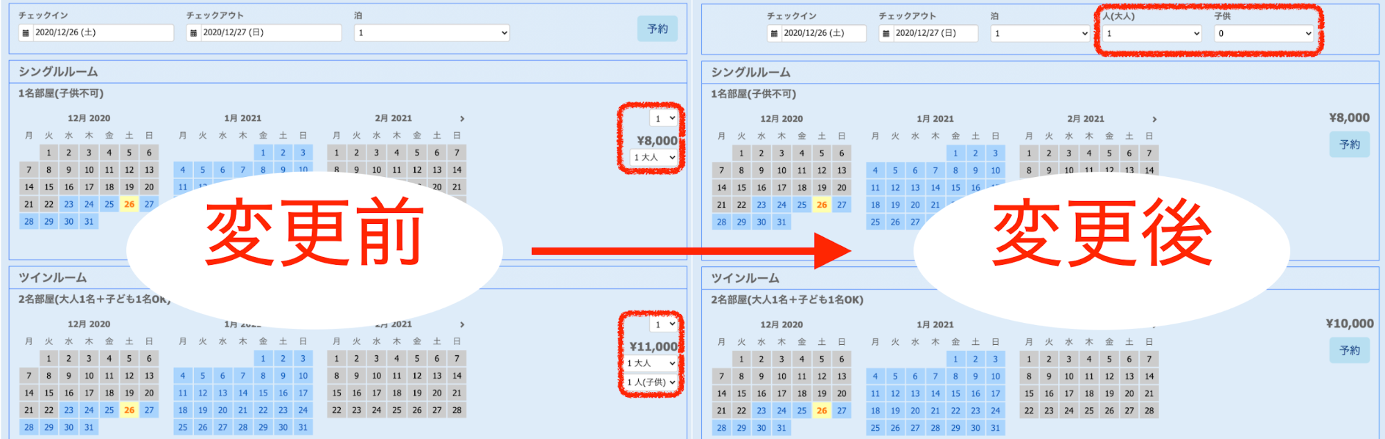 自社HP 「複数部屋タイプ同時に予約可」から「1部屋ずつのみ予約可」に変更する方法