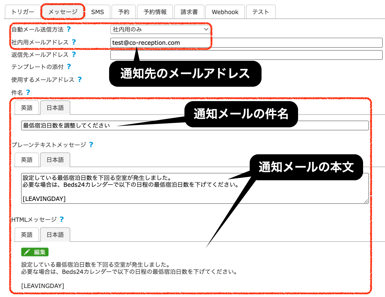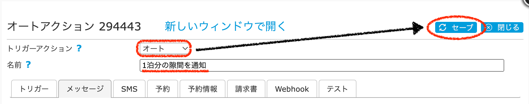 1泊分のすき間が発生した際、自動で通知が送られるように設定します。