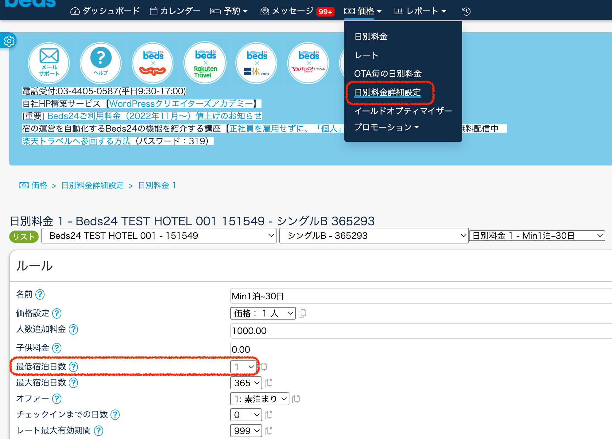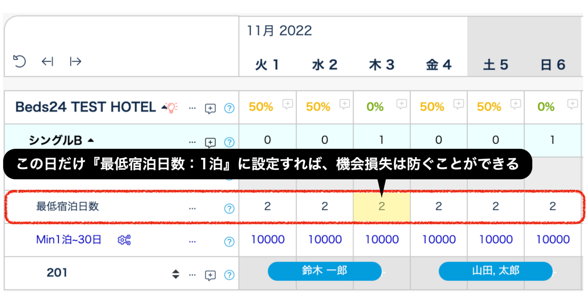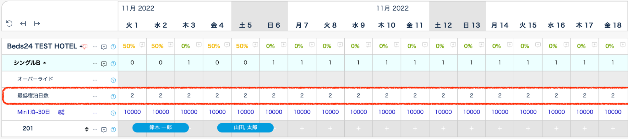 該当日だけ最低宿泊日数を変更