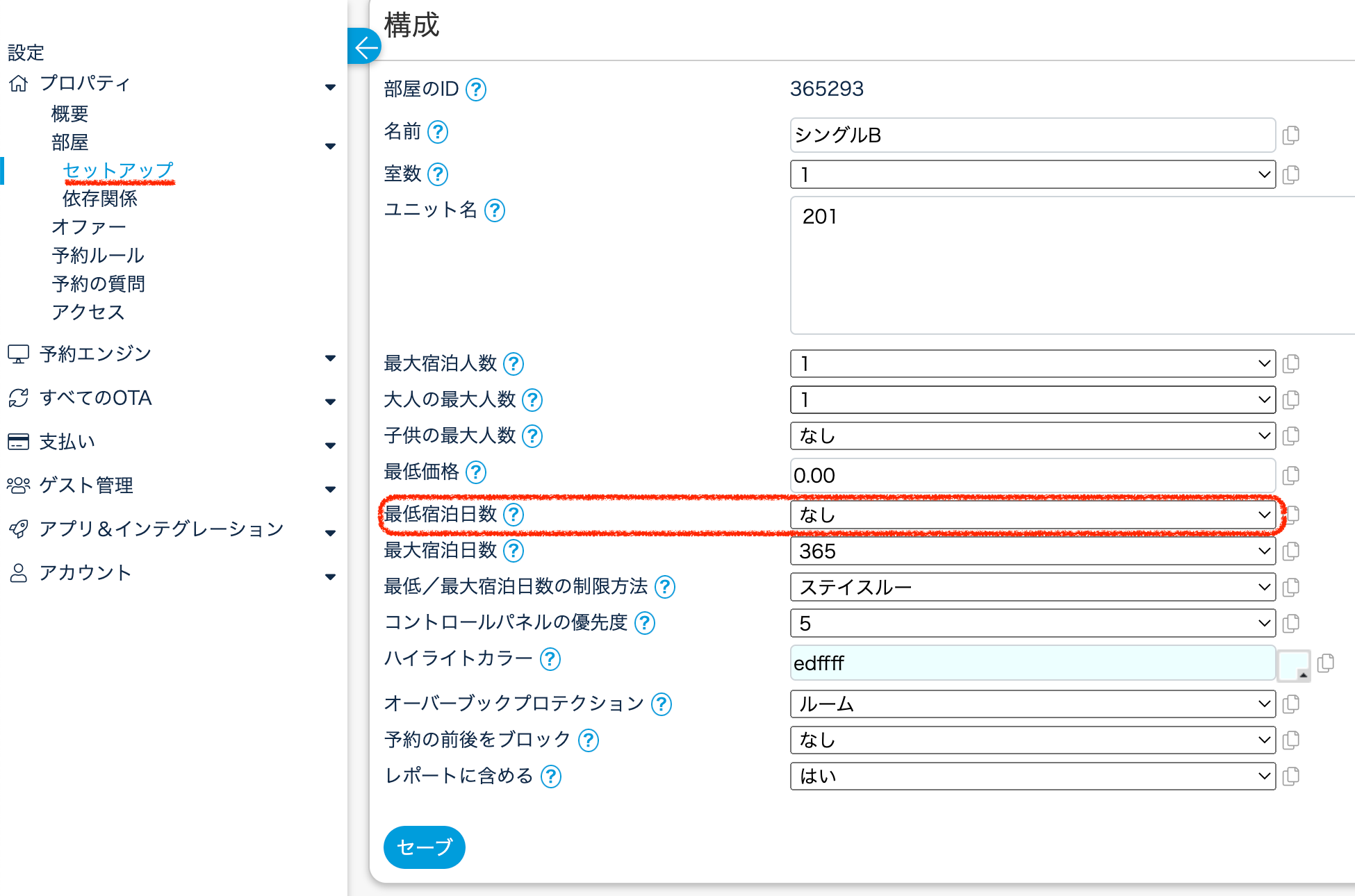 ※こちらの設定は『部屋タイプ売り』の場合、うまく機能しません。