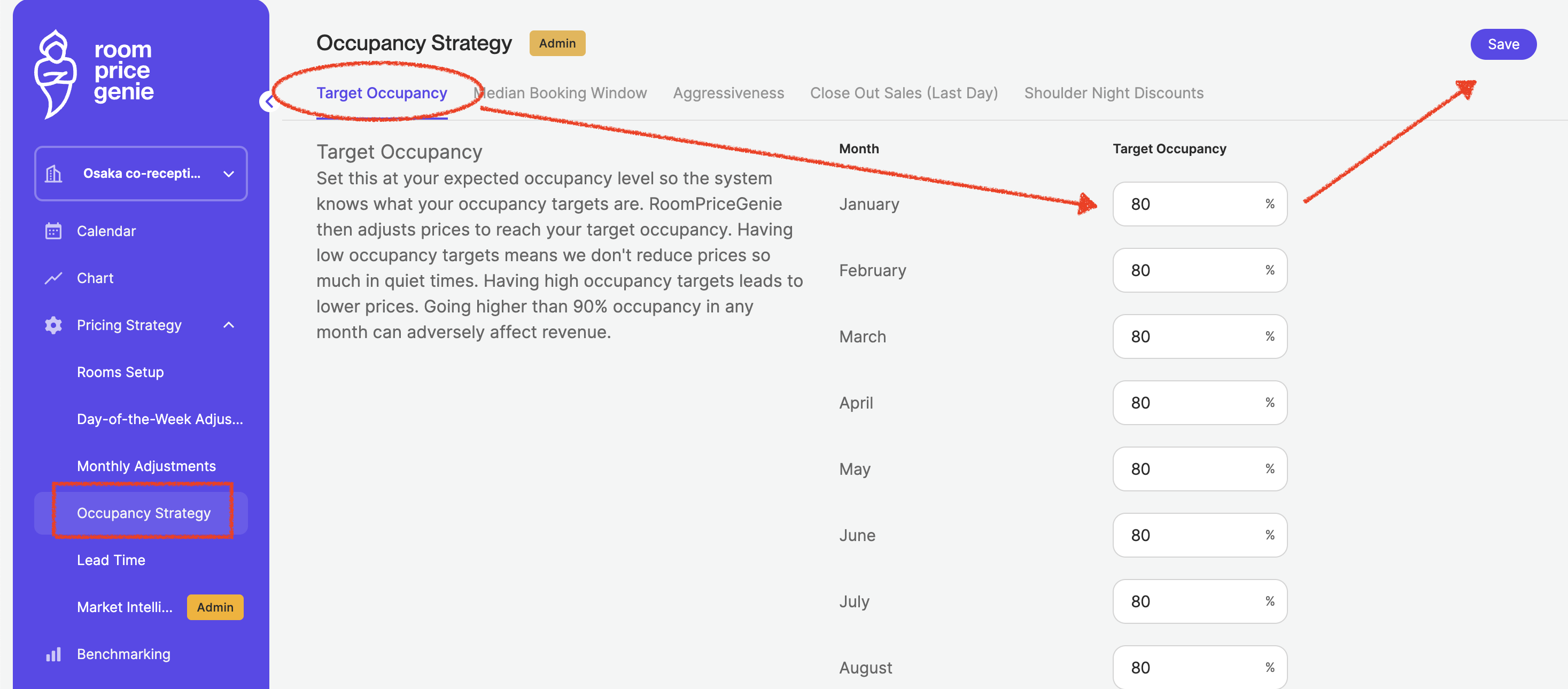 例えば、1月に通常40%の稼働率である場合は、1月のターゲット稼働率を40-50%に設定してください。