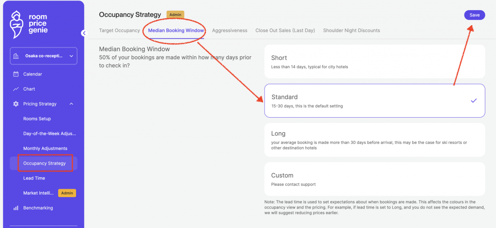| Standard(標準) | 予約の半分が14日以上30日未満 | デフォルト設定 |