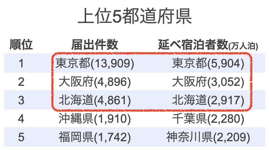 民泊届出件数と全く同じ顔ぶれとなっています。