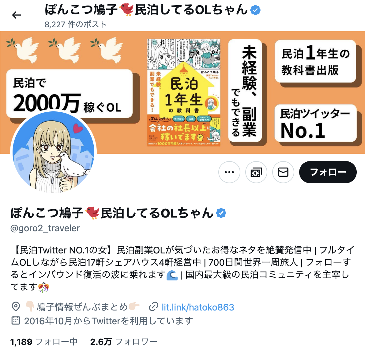 これは、X(Twitter)上の民泊インフルエンサーのぽんこつ鳩子さんの著書で述べられています。