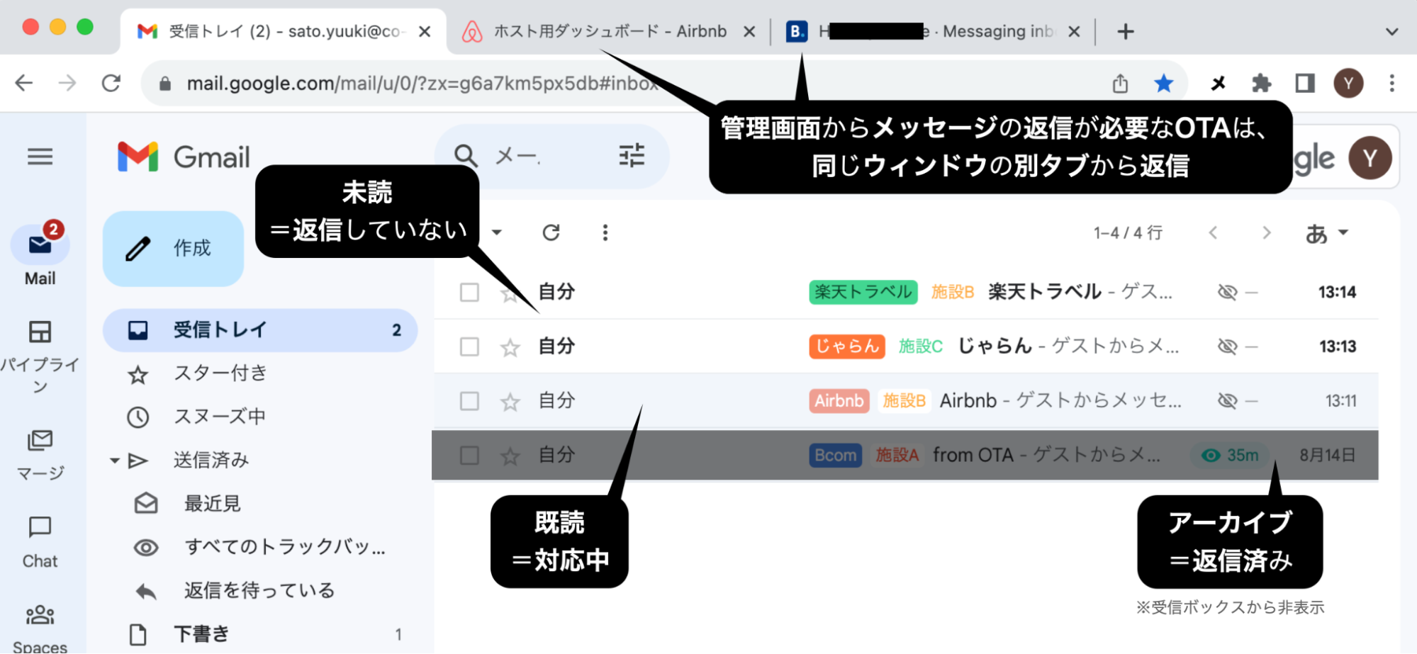 参考:ゲストへの返信作業はPCとGmailで一元管理(後略)