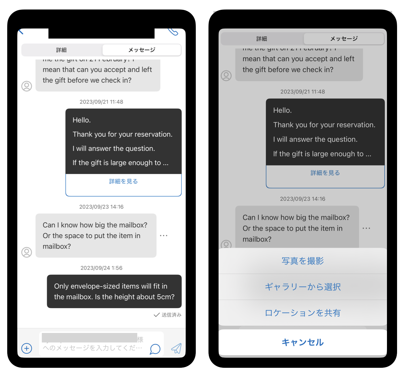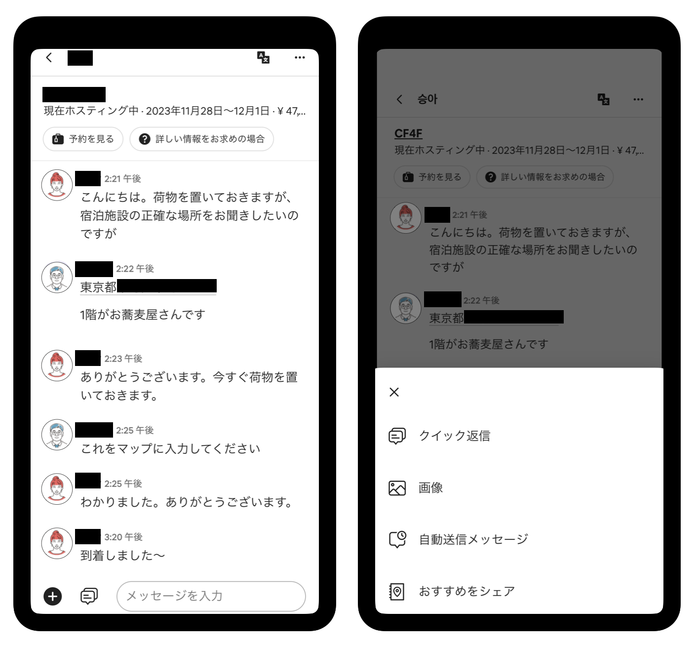 ゲストとのやりとりは、スマホアプリのメッセージ機能が便利です。