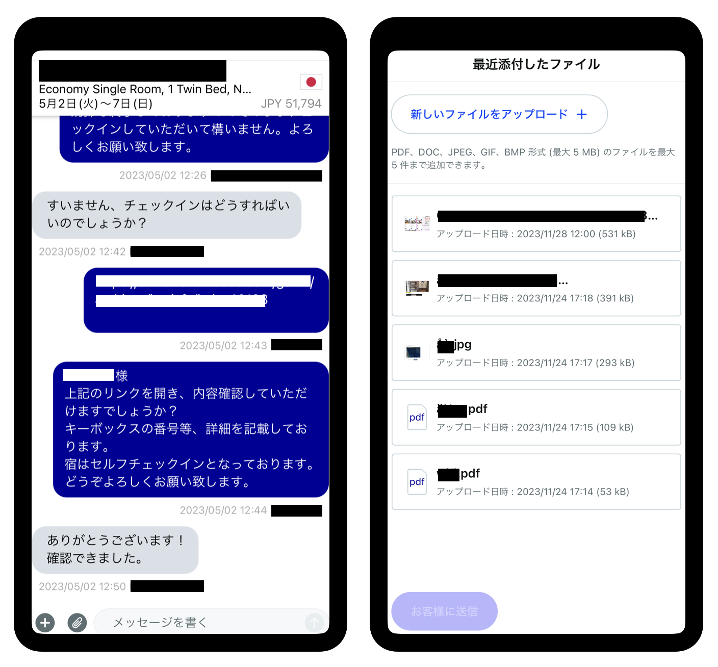 どのアプリも、ゲストとチャット形式でのスムーズなやり取りが可能です。