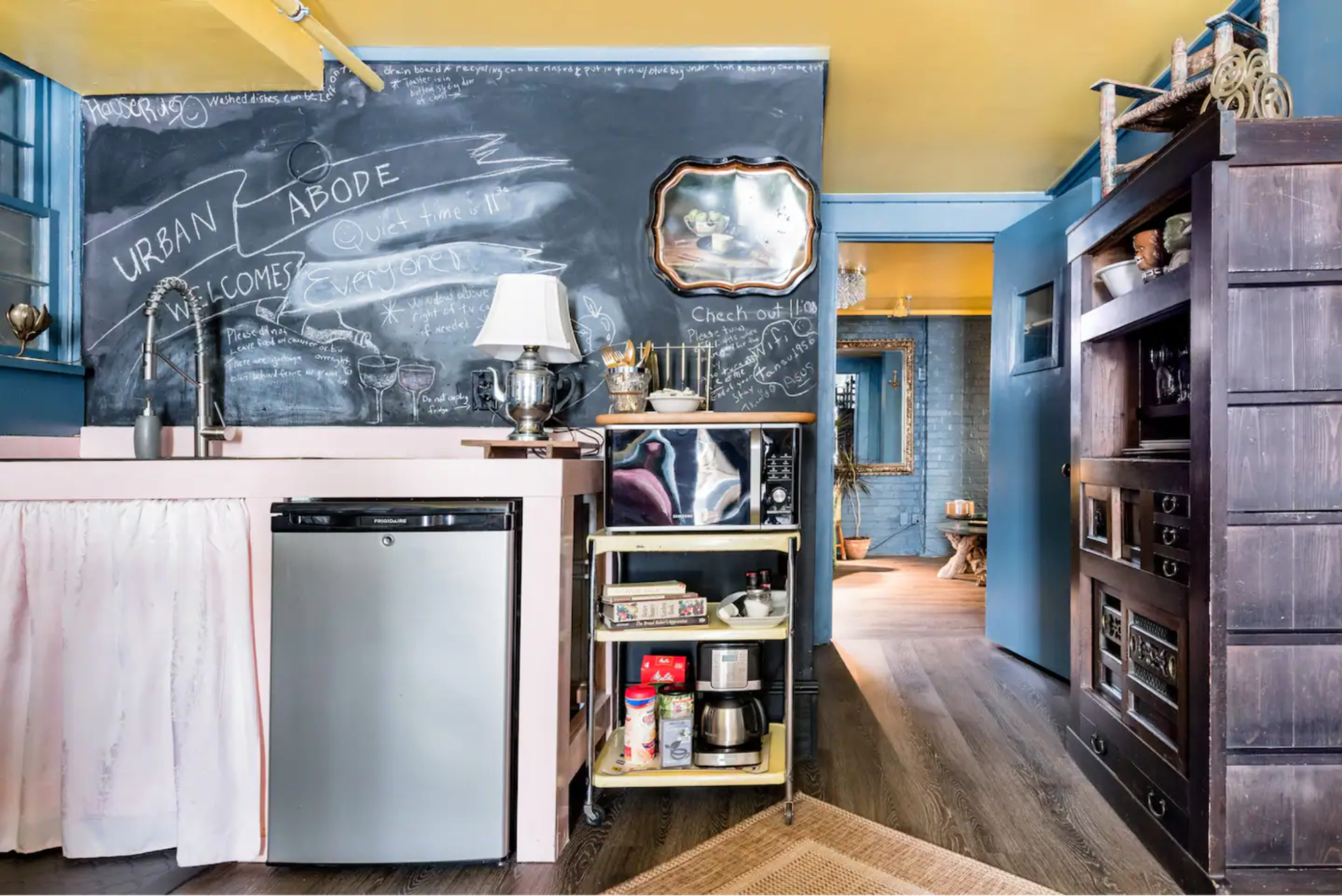 アッシュビルの西側に位置する、レトロでカラフルな宿です。