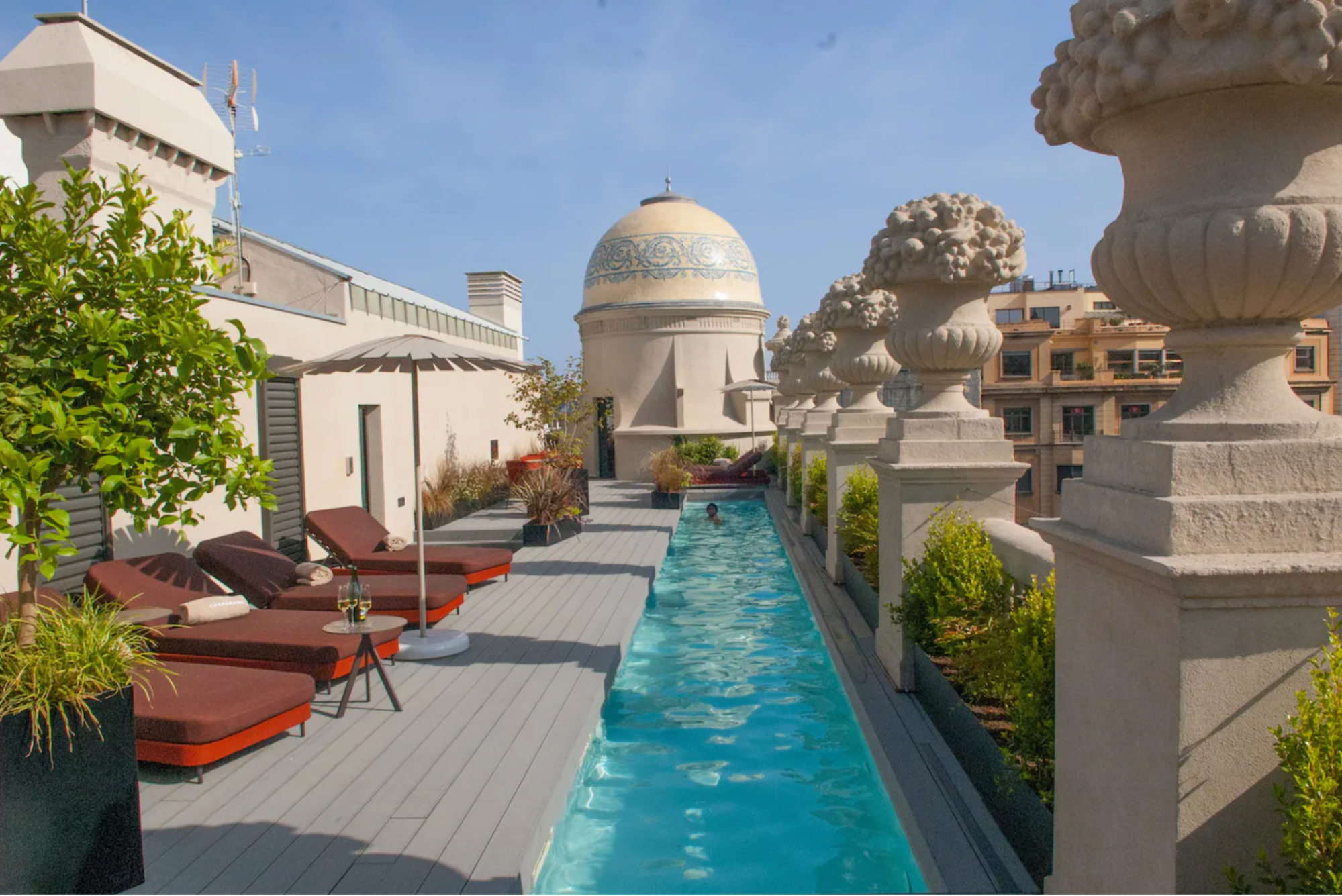 屋上では太陽の光を浴びながらプールを楽しむことができます。