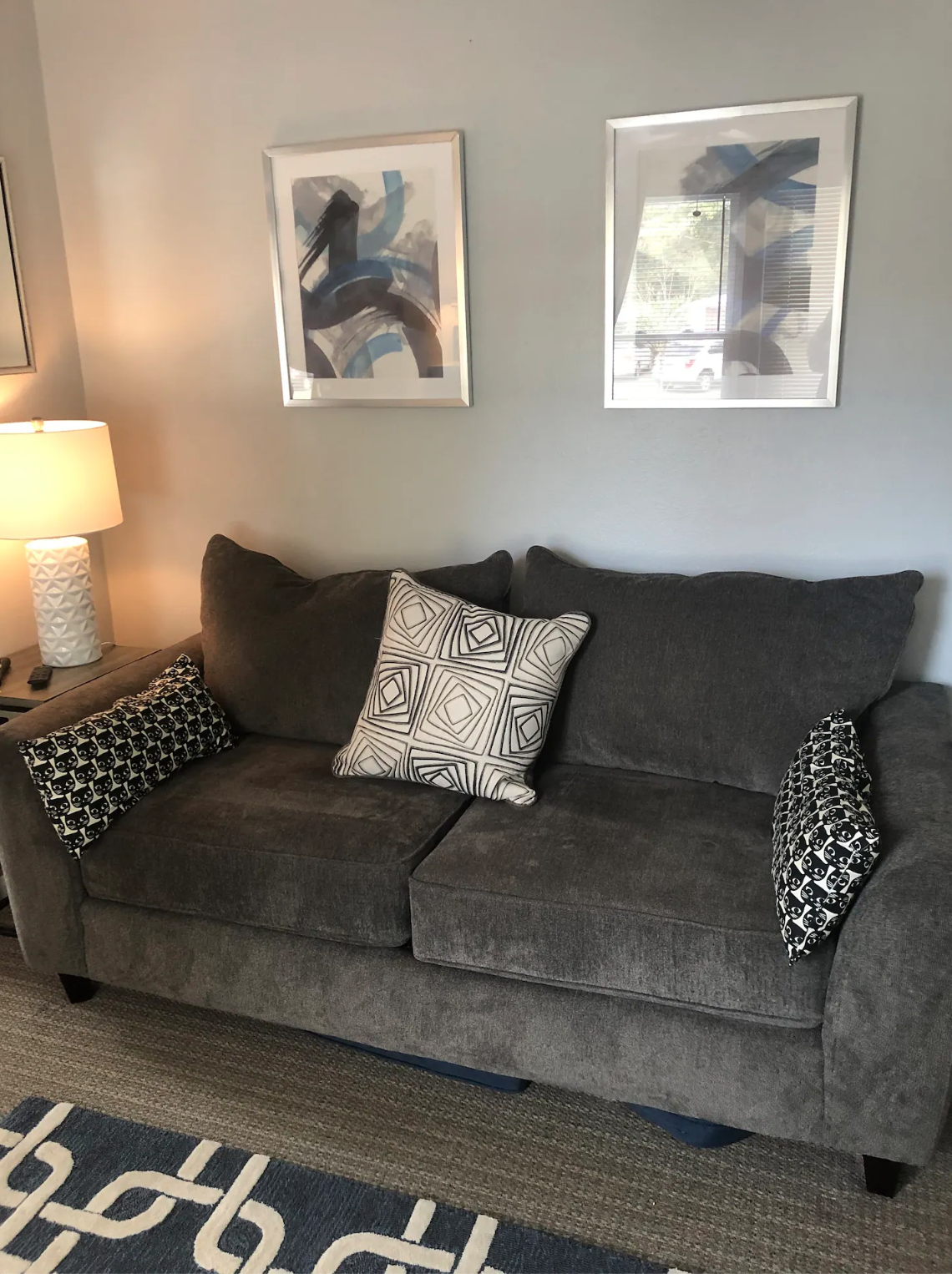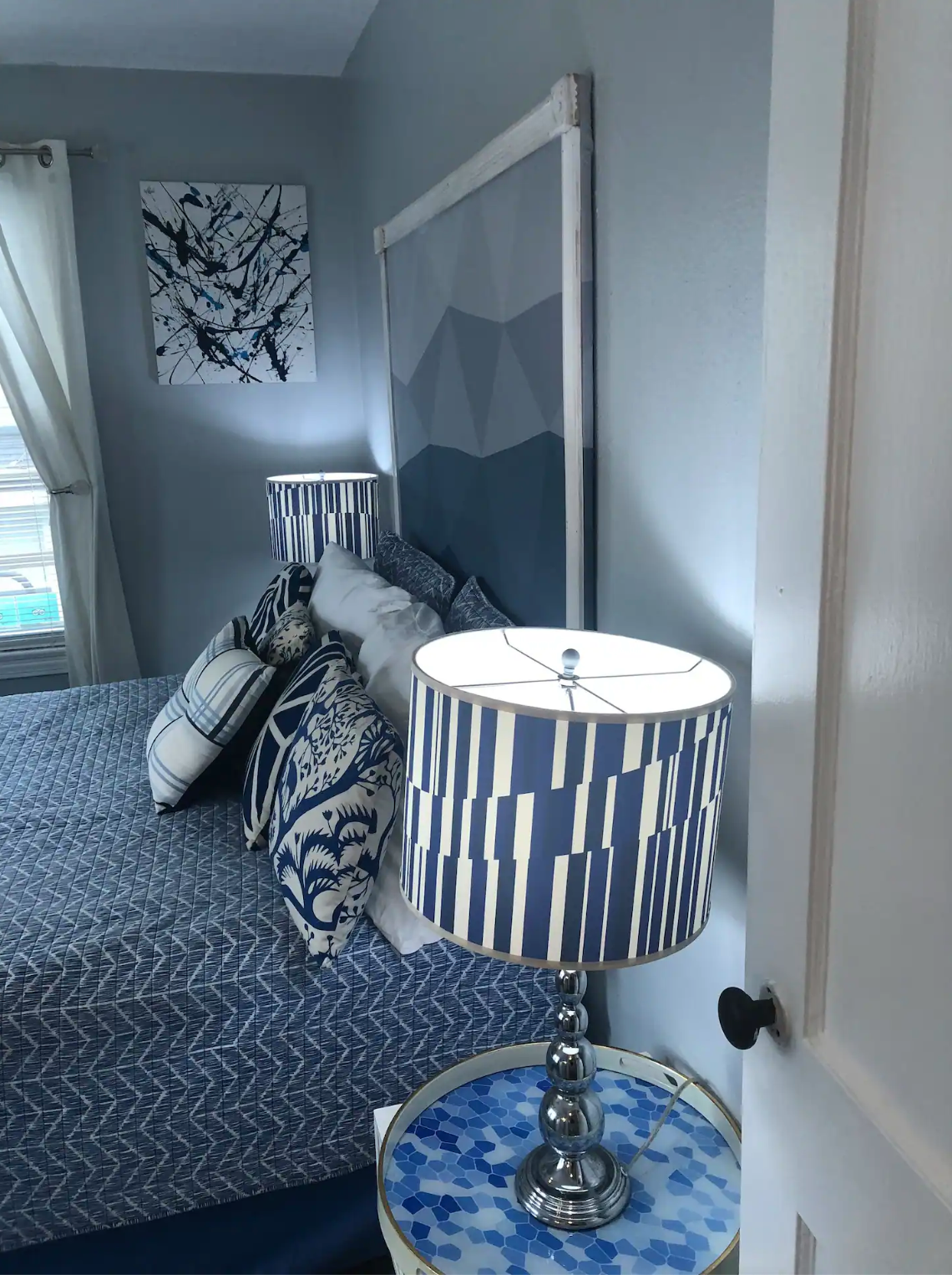 アートやインテリアのカラーはネイビーで統一されています。