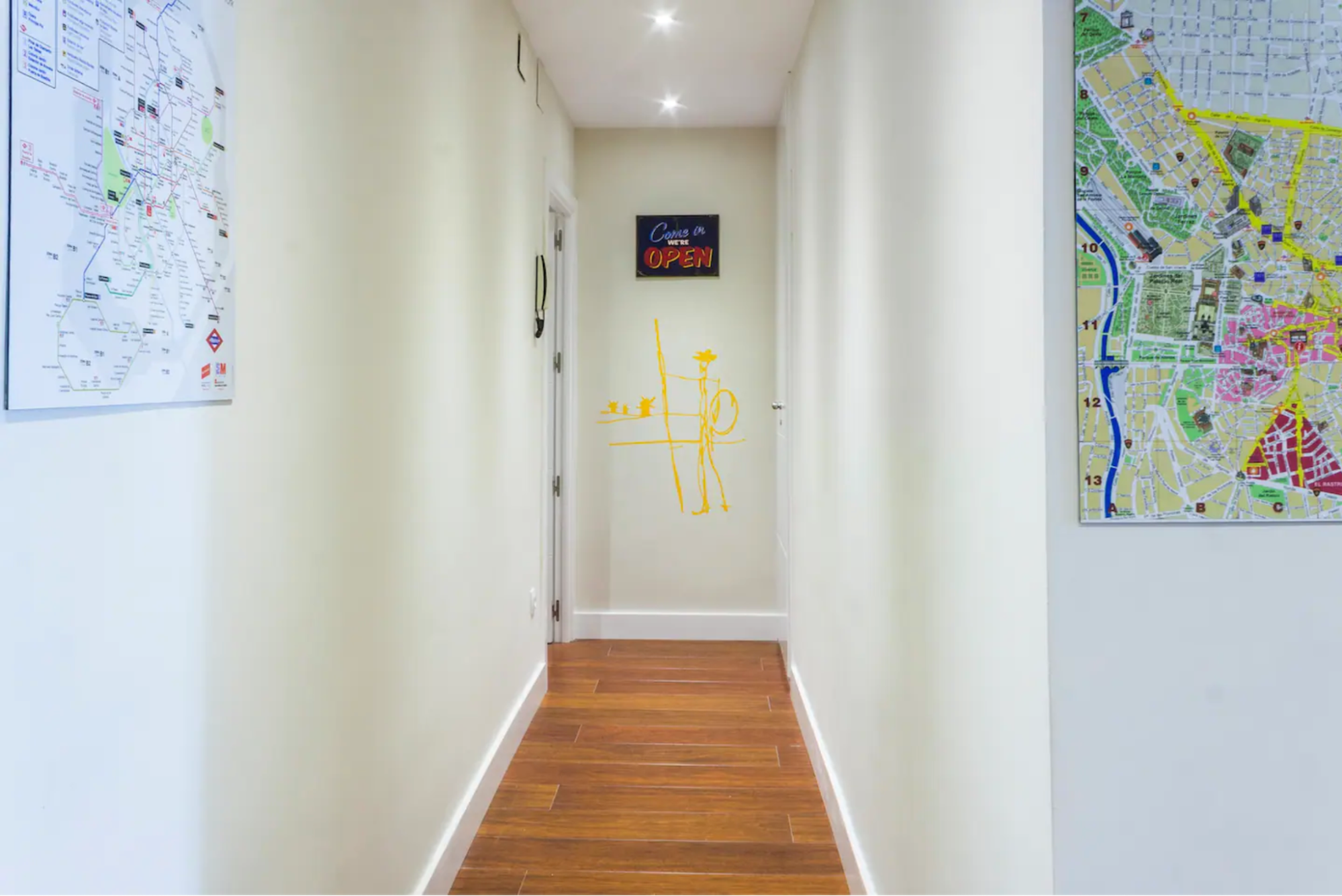 壁には地図や路線図が貼られており、ゲストの旅を手助けしてくれます。