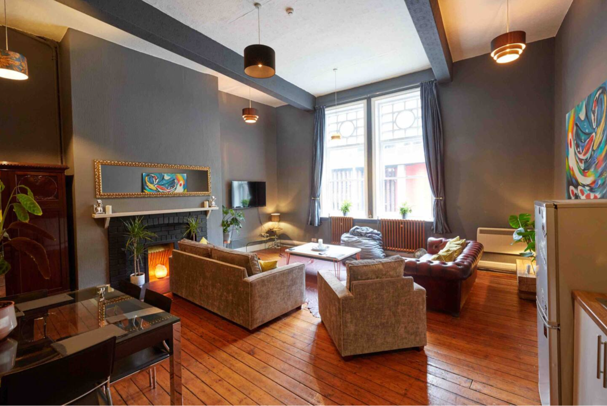 美術学校の校舎を改装した広々としたフラットです。