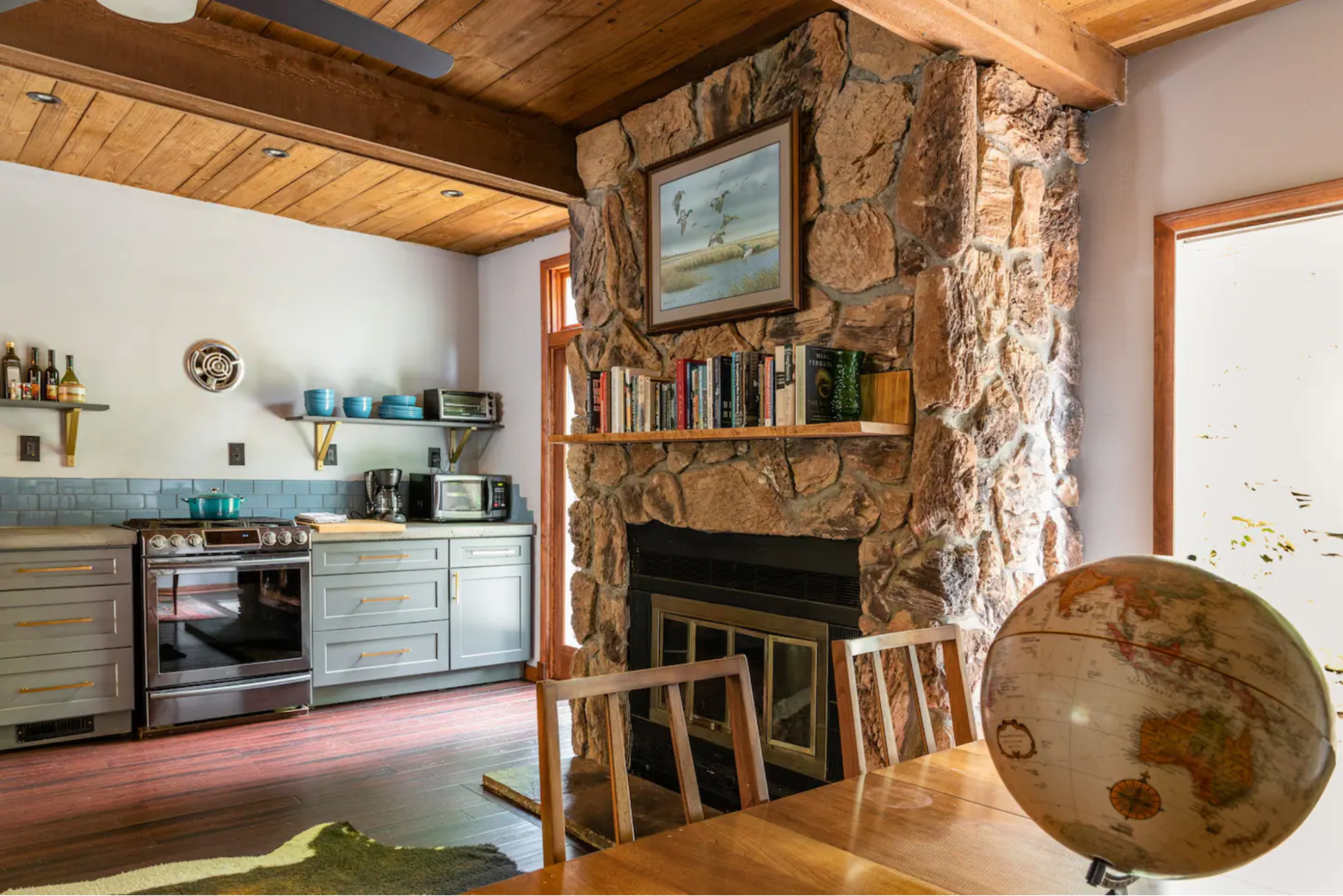 室内には、薪ストーブとセントラルエアコンシステムがあります。