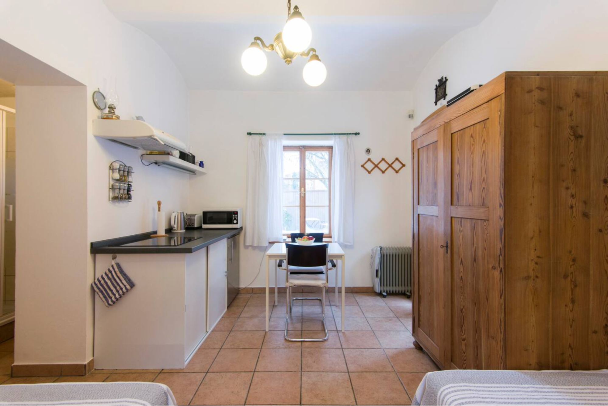 お部屋は設備が整っており、大きなワードローブも完備しています。