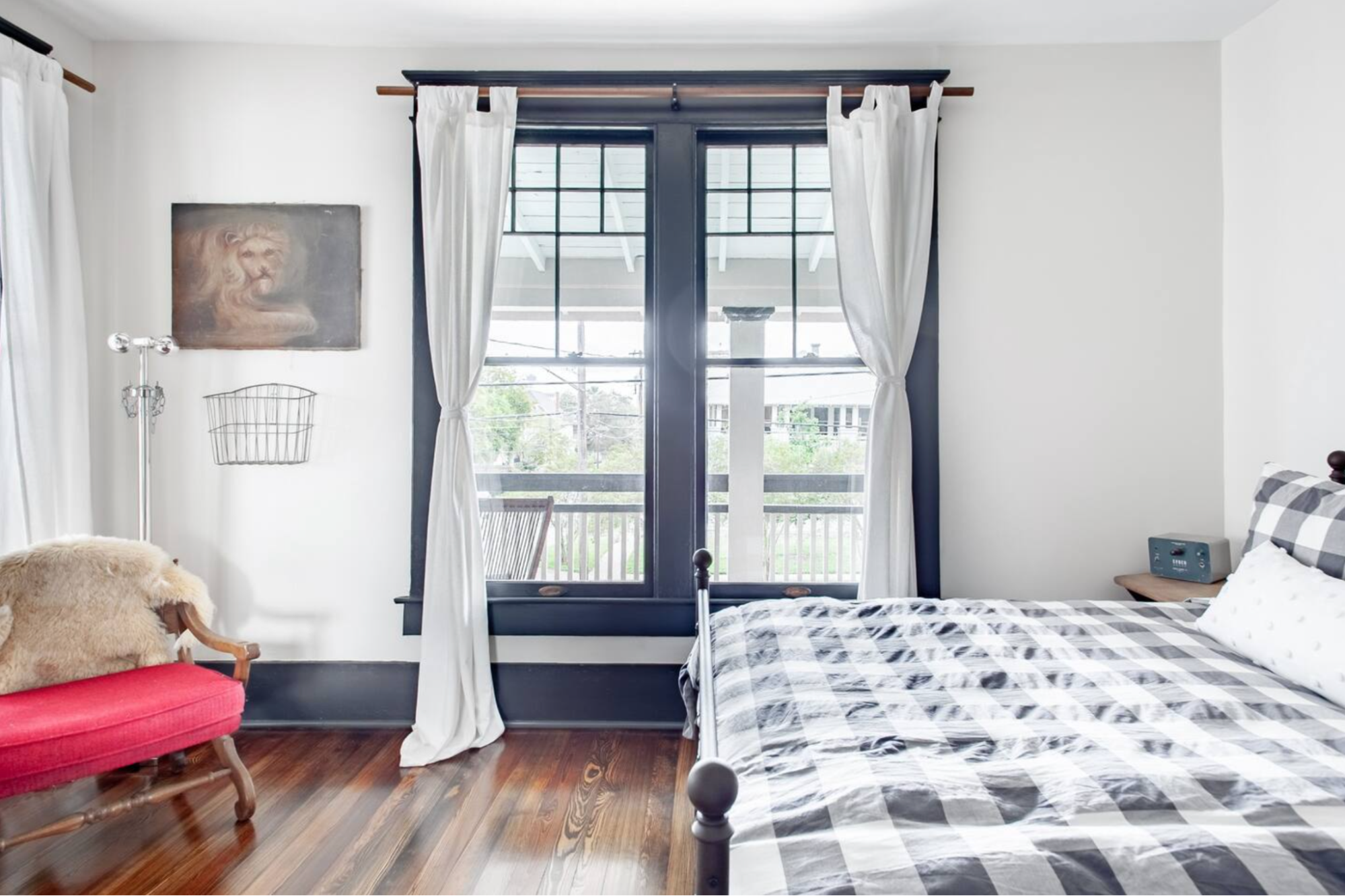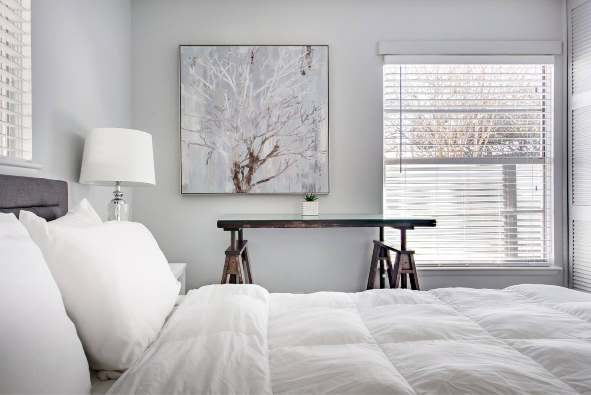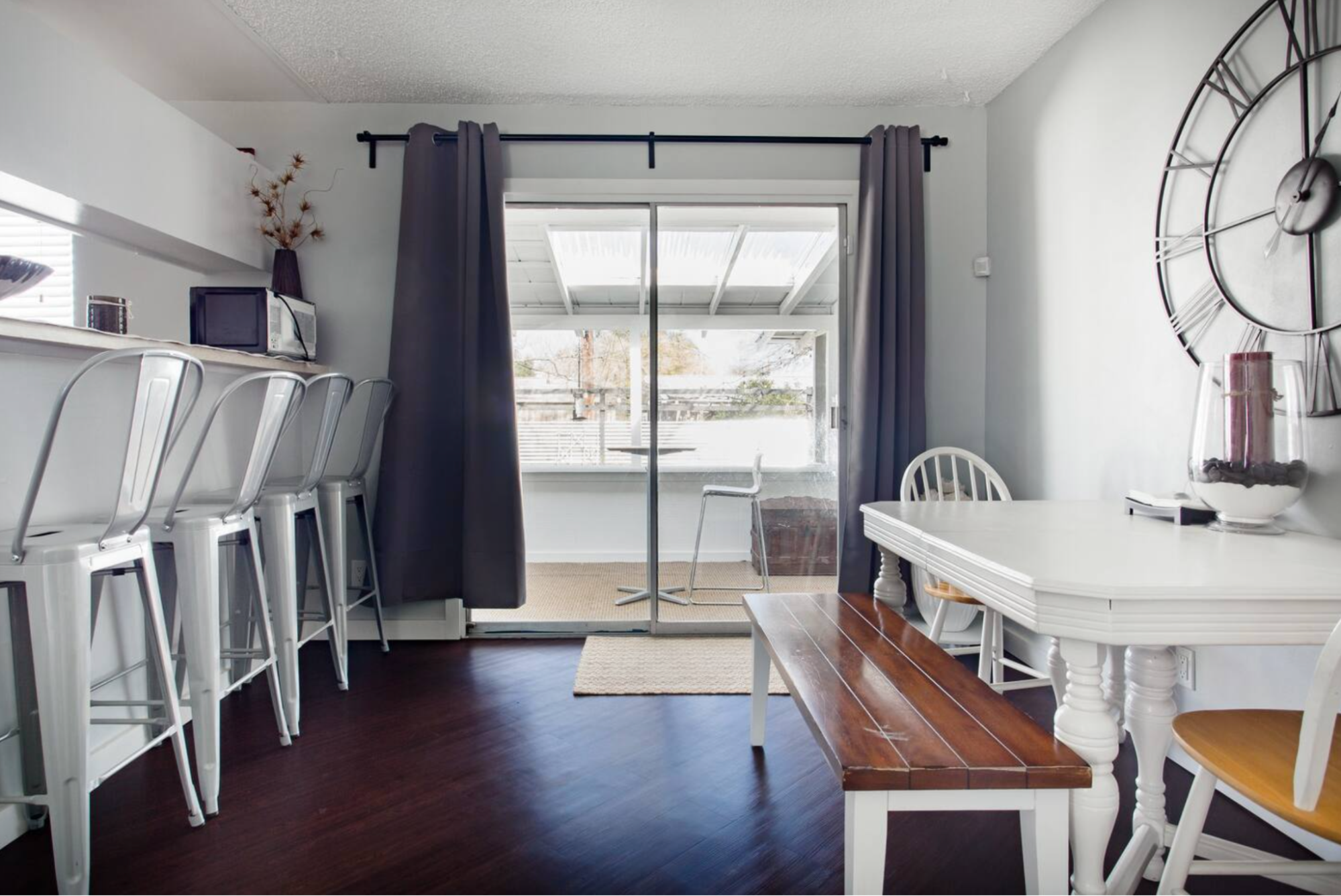 空港近くの白とダークウッドを基調にデザインされたAirbnbです。