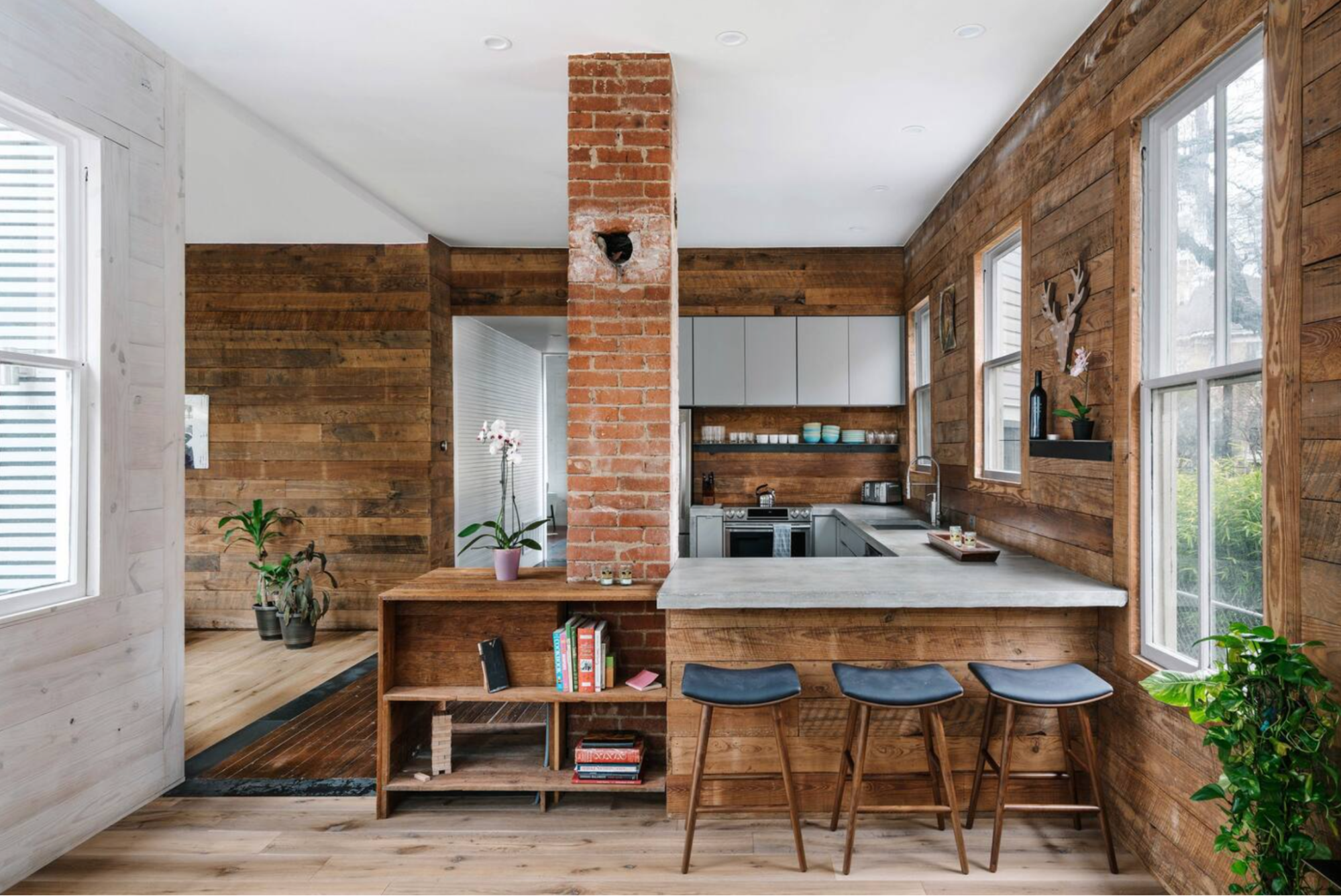 1907年に建てられたこの家は、レンガや木の板がむき出しの構造です。