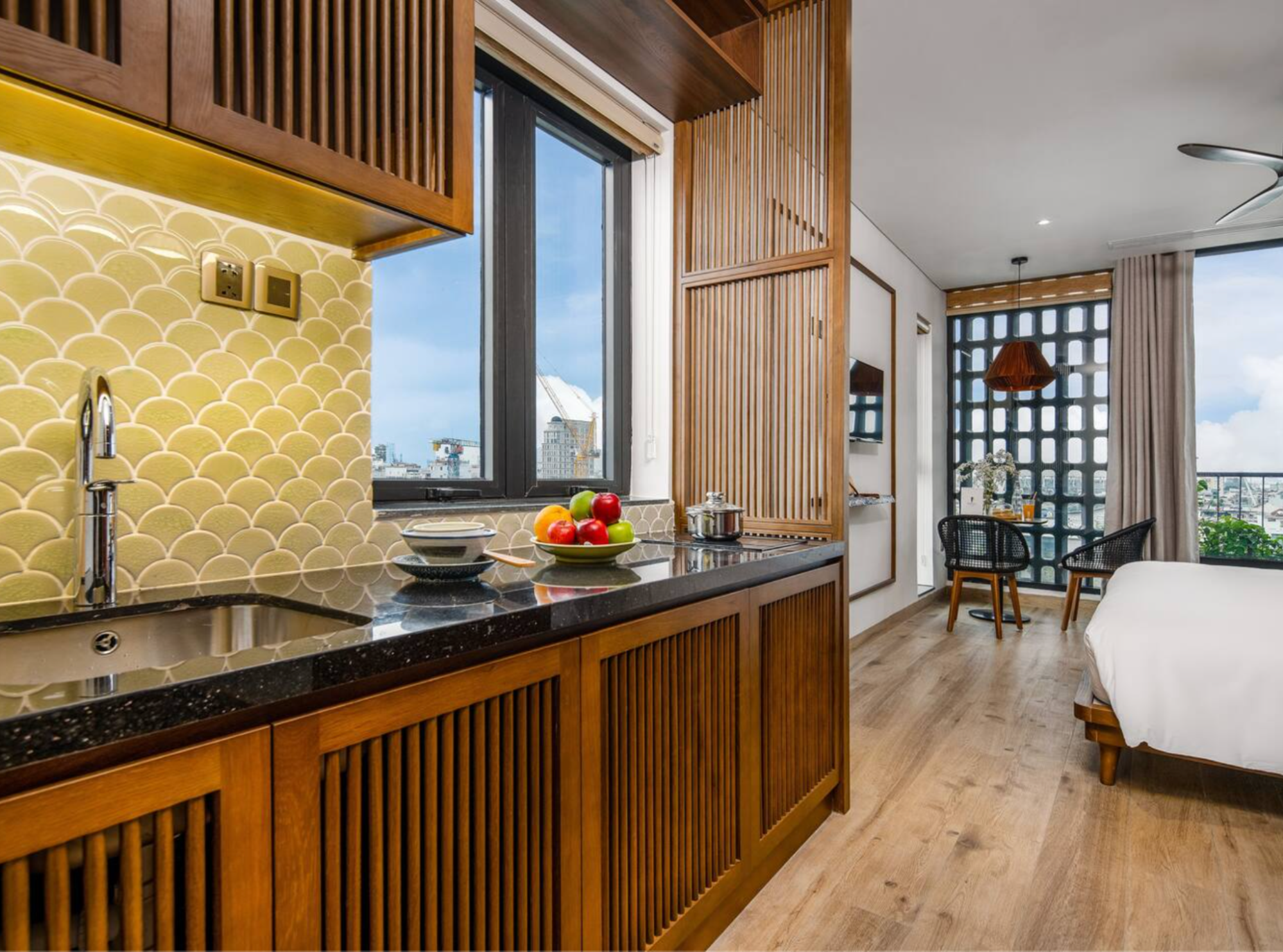 室内は広く、バルコニーに出れば、ベトナムの景色が広がります。