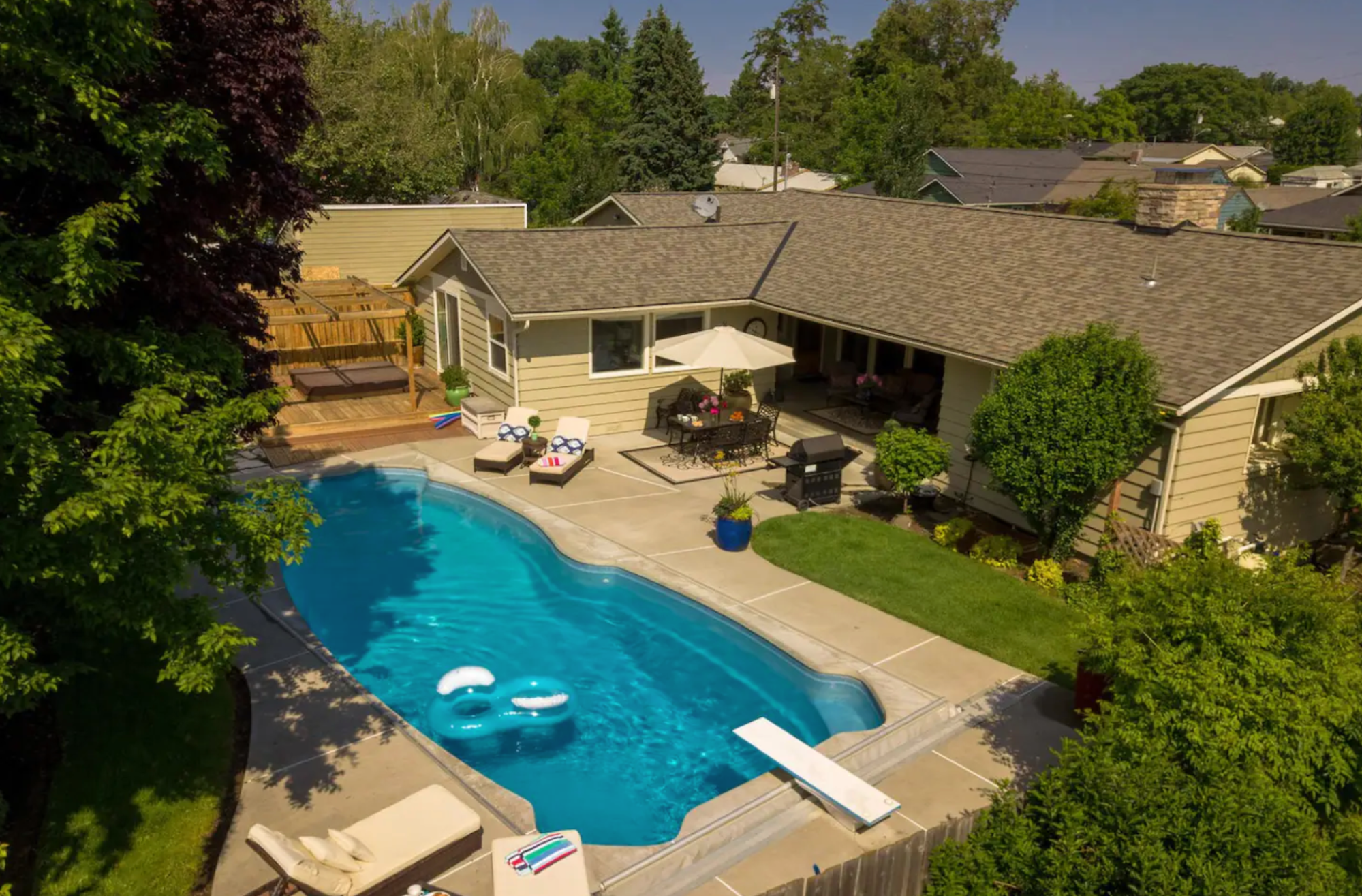 大きな裏庭にプールがある一軒家です。
