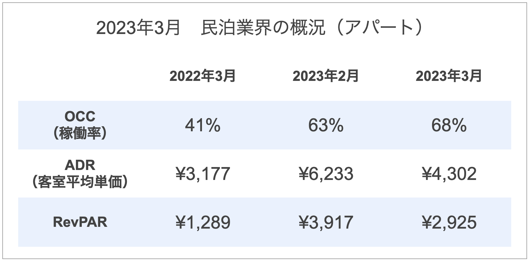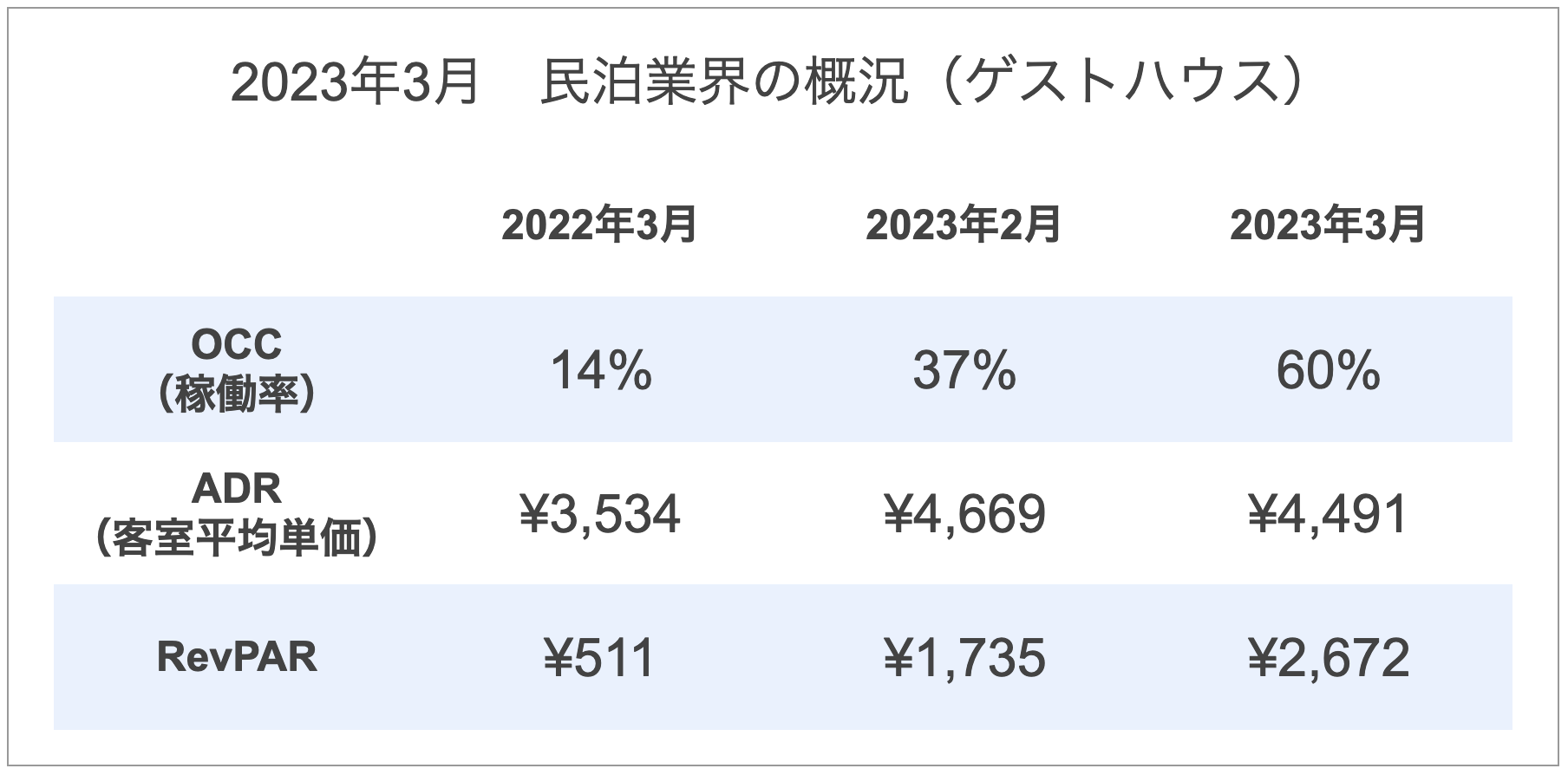 Beds24のデータを元に、民泊業界の概況(2023年3月)を紹介しました。