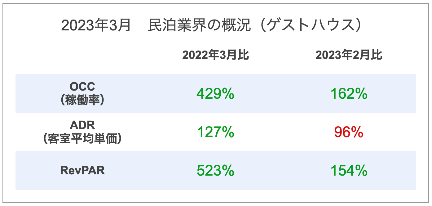 2022年3月比では、OCC、ADR、RevPARすべてが大幅に増えています。
