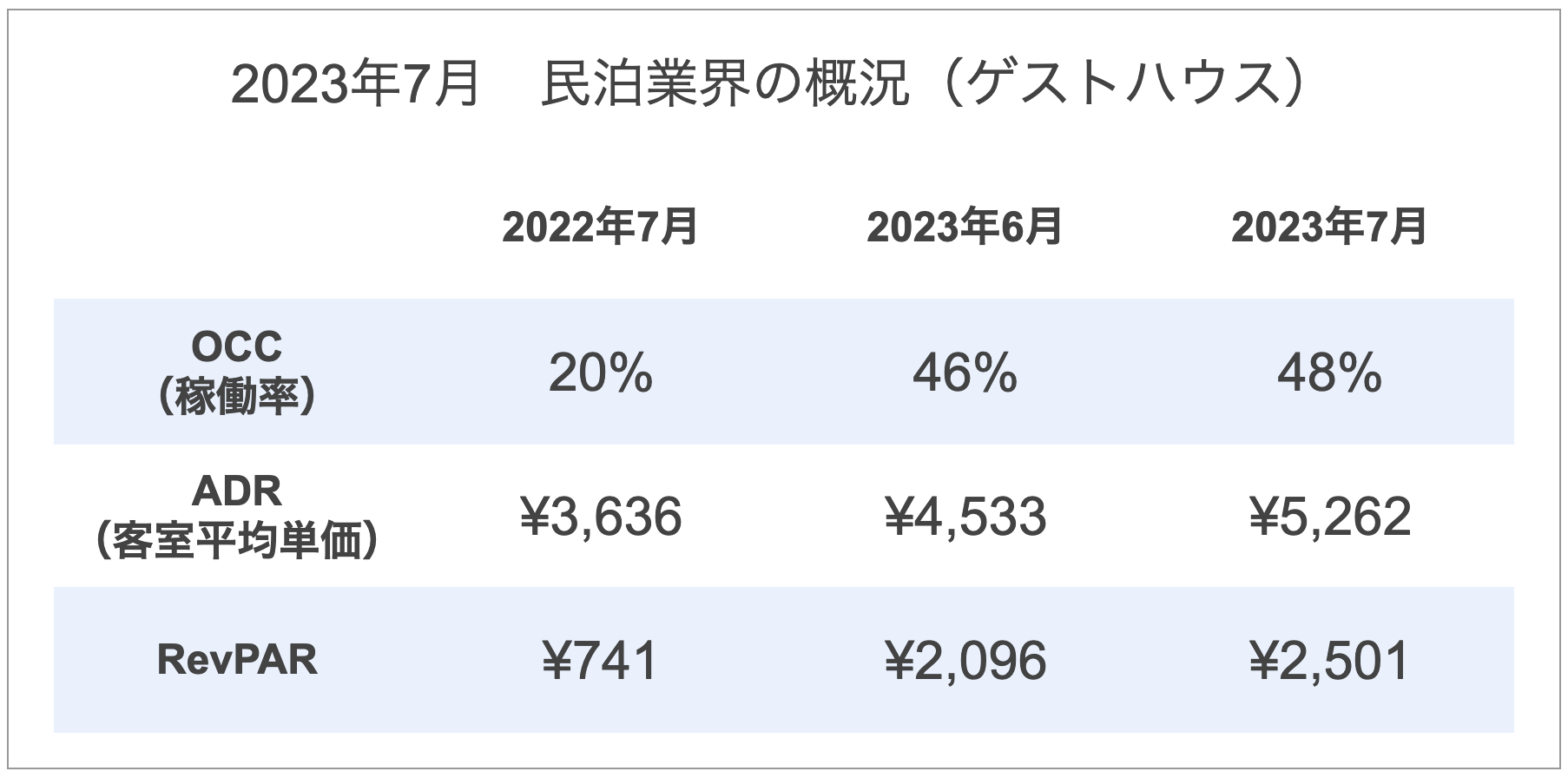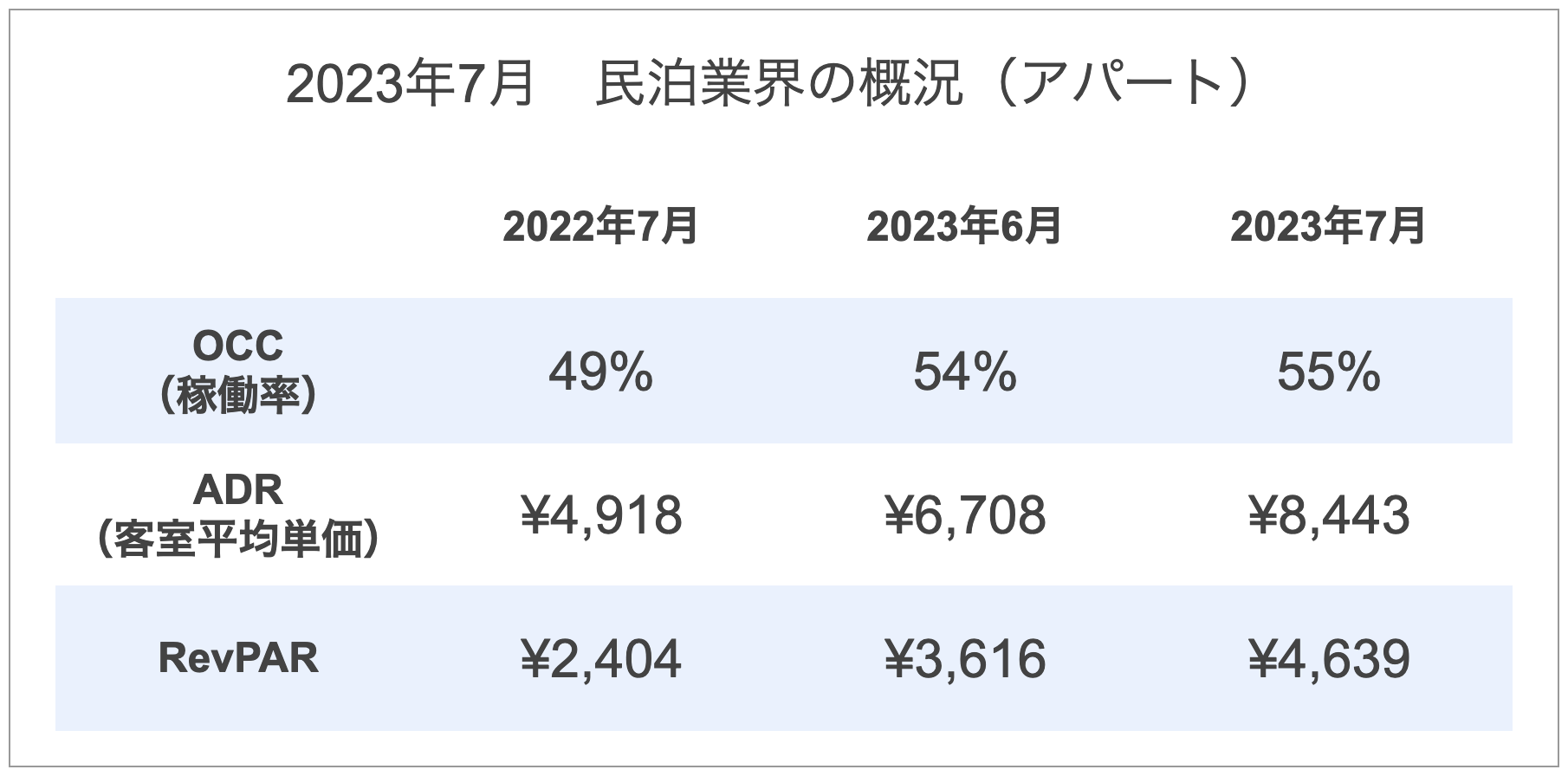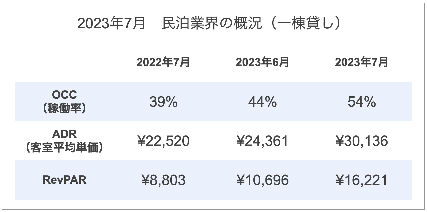 2022年7月比では、ADR、RevPARが大きく伸びています。