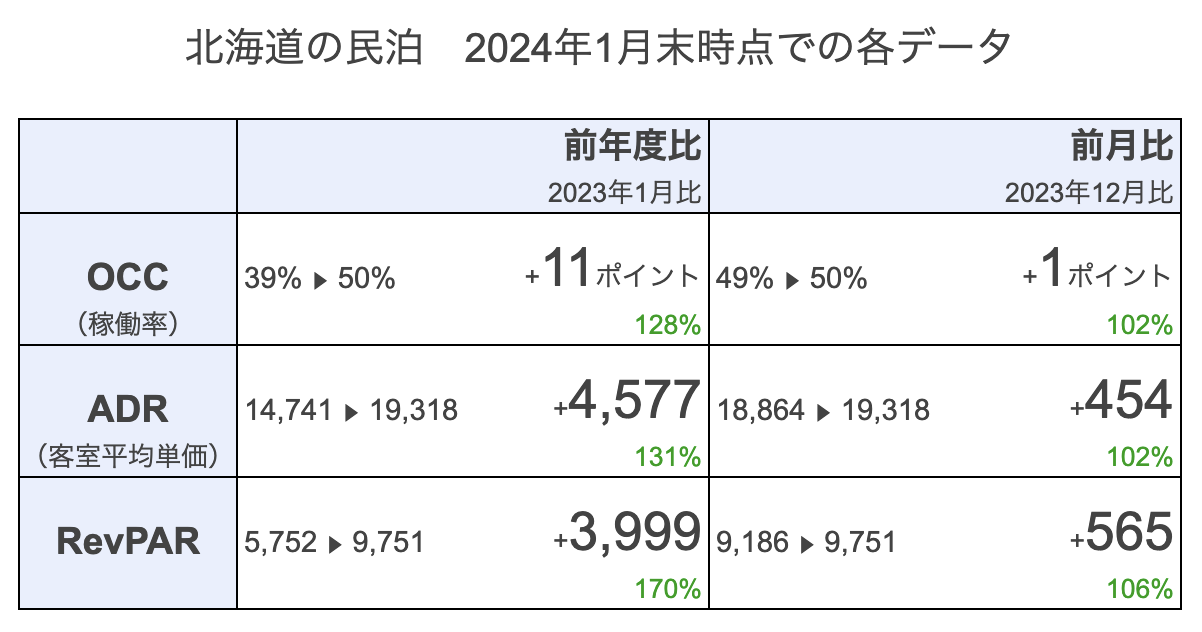 今回ご紹介するのは、北海道にある民泊施設の2024年1月のデータ*です。