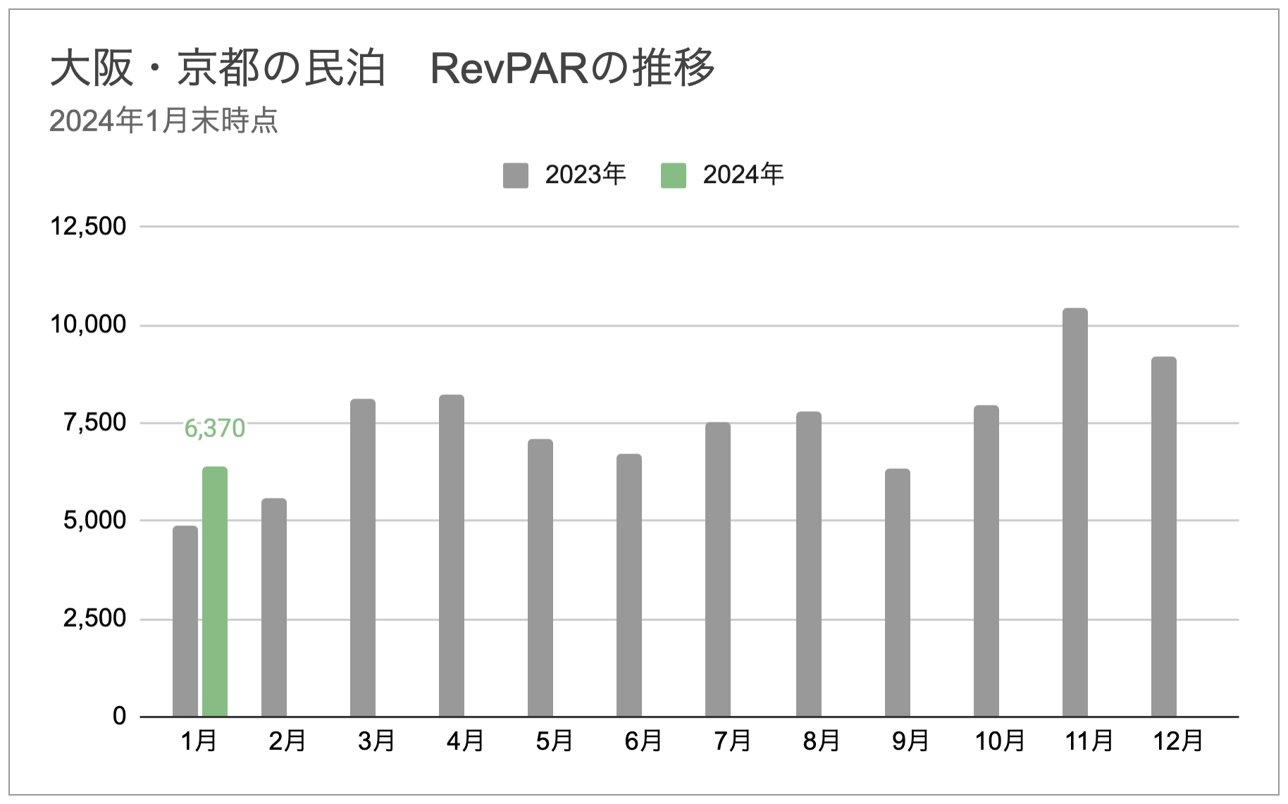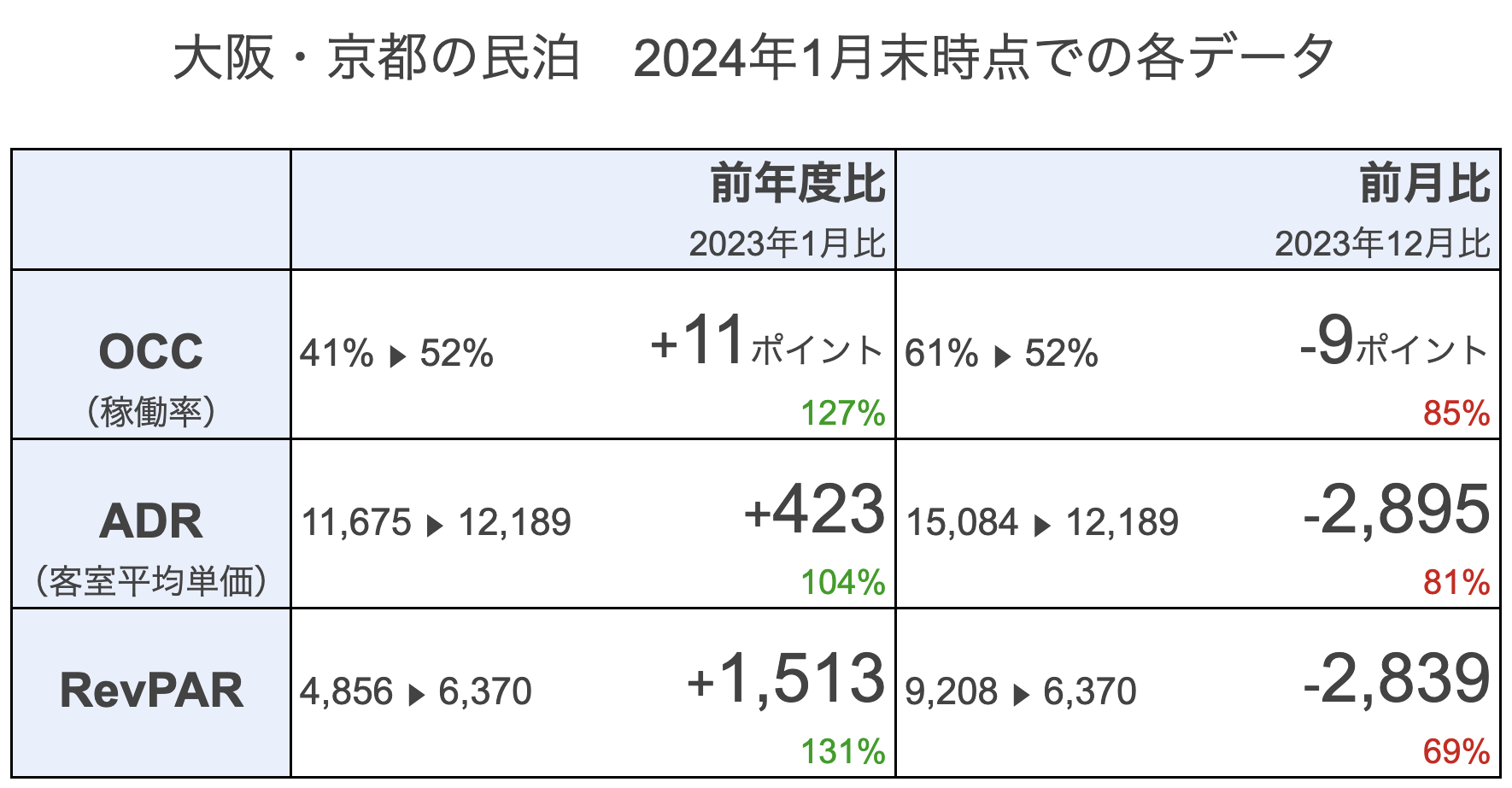 前月比(2023年12月比)で見ると、特にRevPARが下がっています。