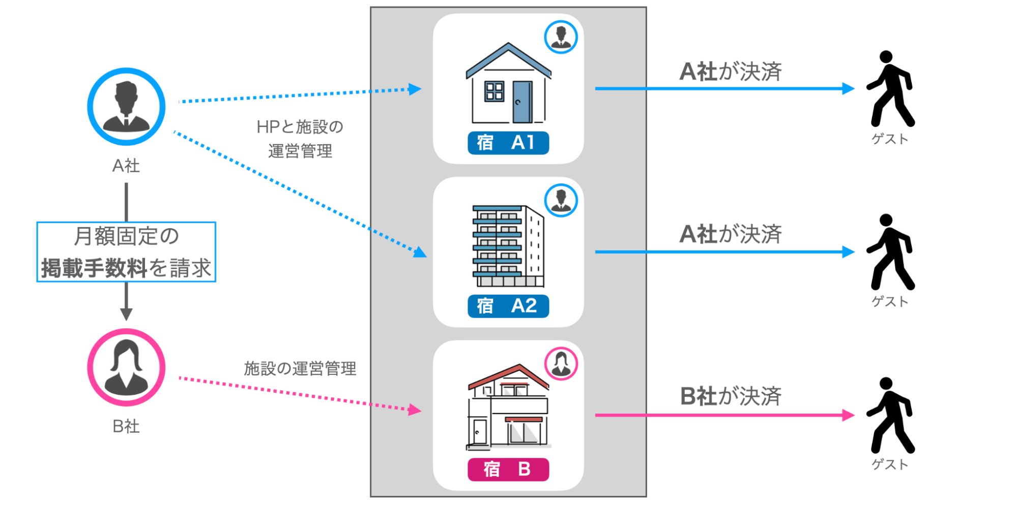 - 宿Bの宿泊費は、B社がゲストから決済する