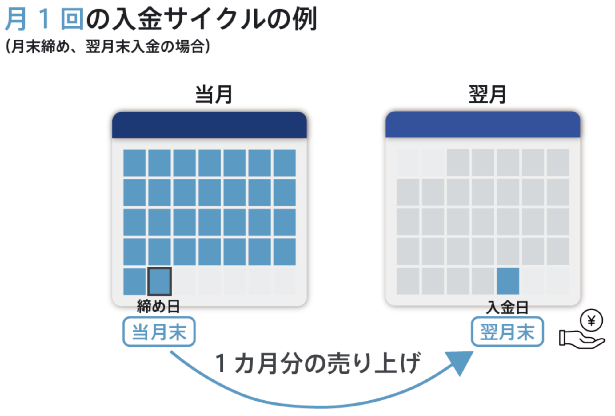 以下の入金サイクルは、事前決済、最短に設定した場合の内容です。