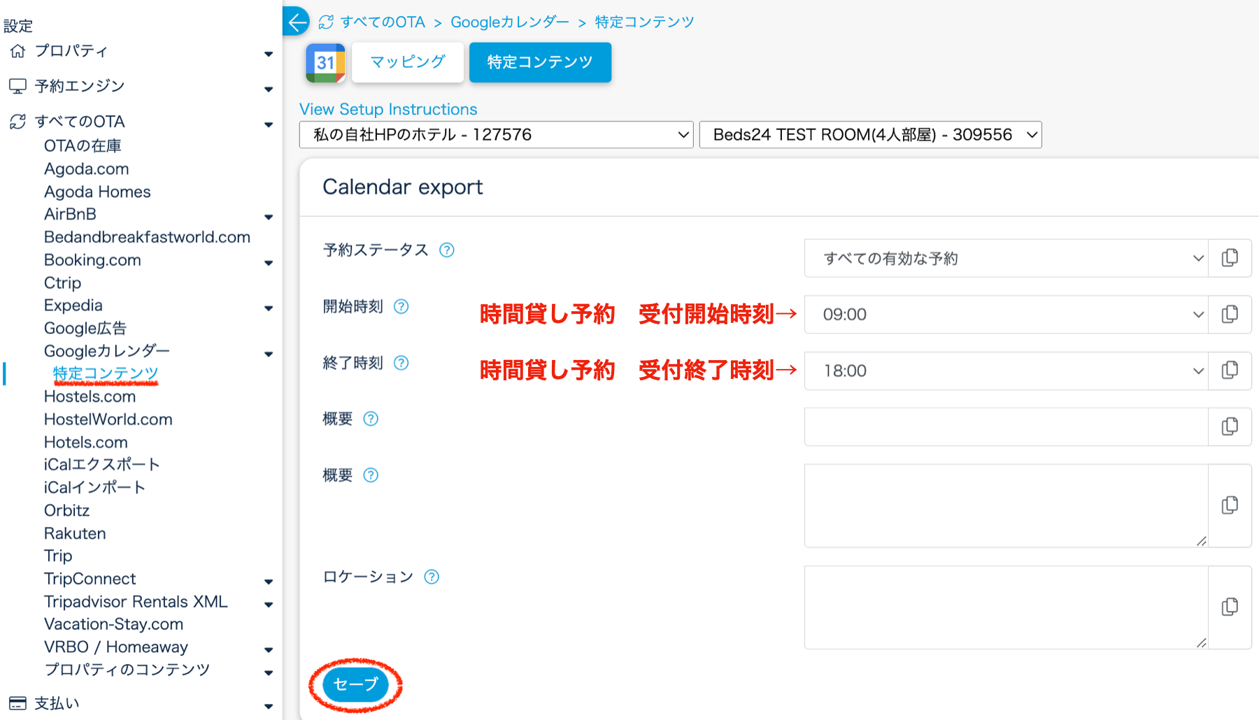 Beds24で以下の設定を実施しましょう。