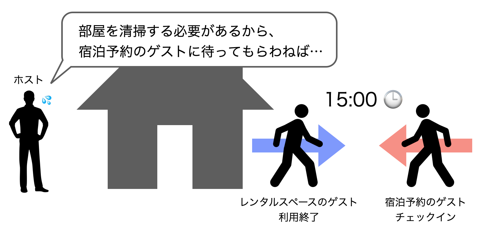 時間貸しと宿泊予約の入れ替えが同時刻になってしまいますね。