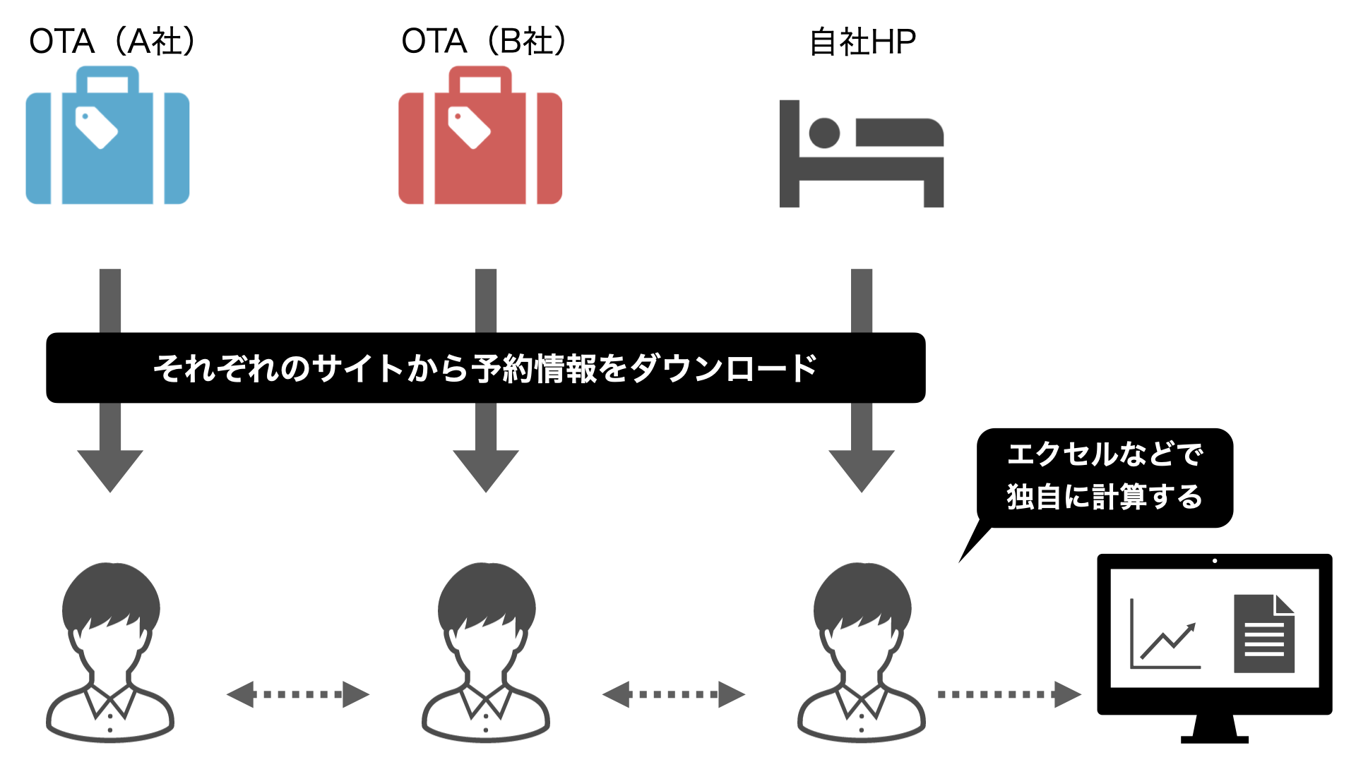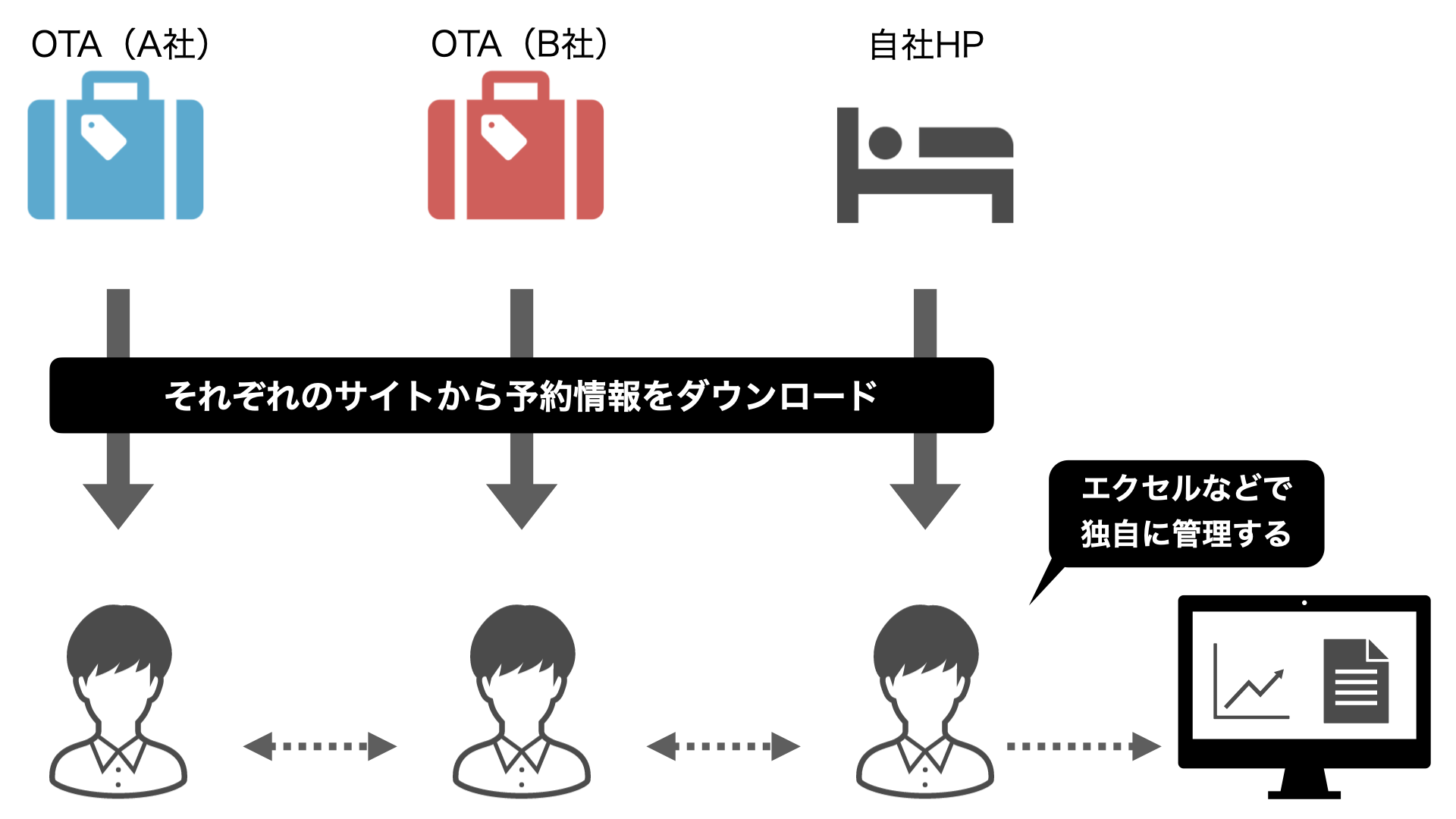 - OTAや自社HPの予約データをエクセルなどで独自に管理