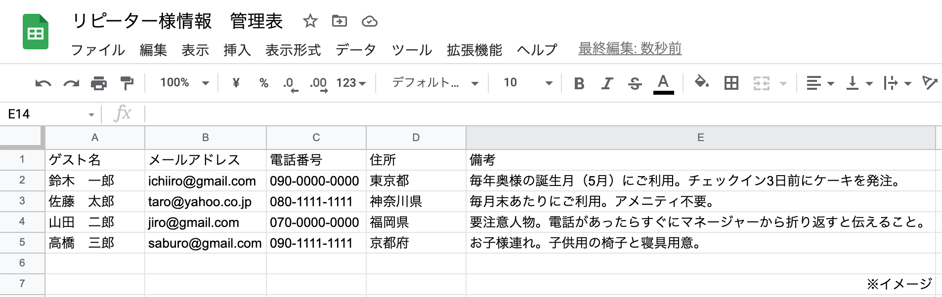 - ゲストの細かい情報は、エクセルや手書きで管理