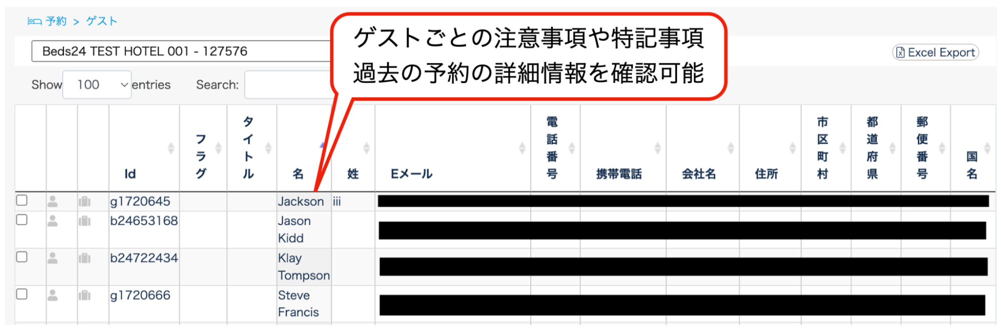 - ゲストにIDが自動で割り振られ、各予約情報と連動