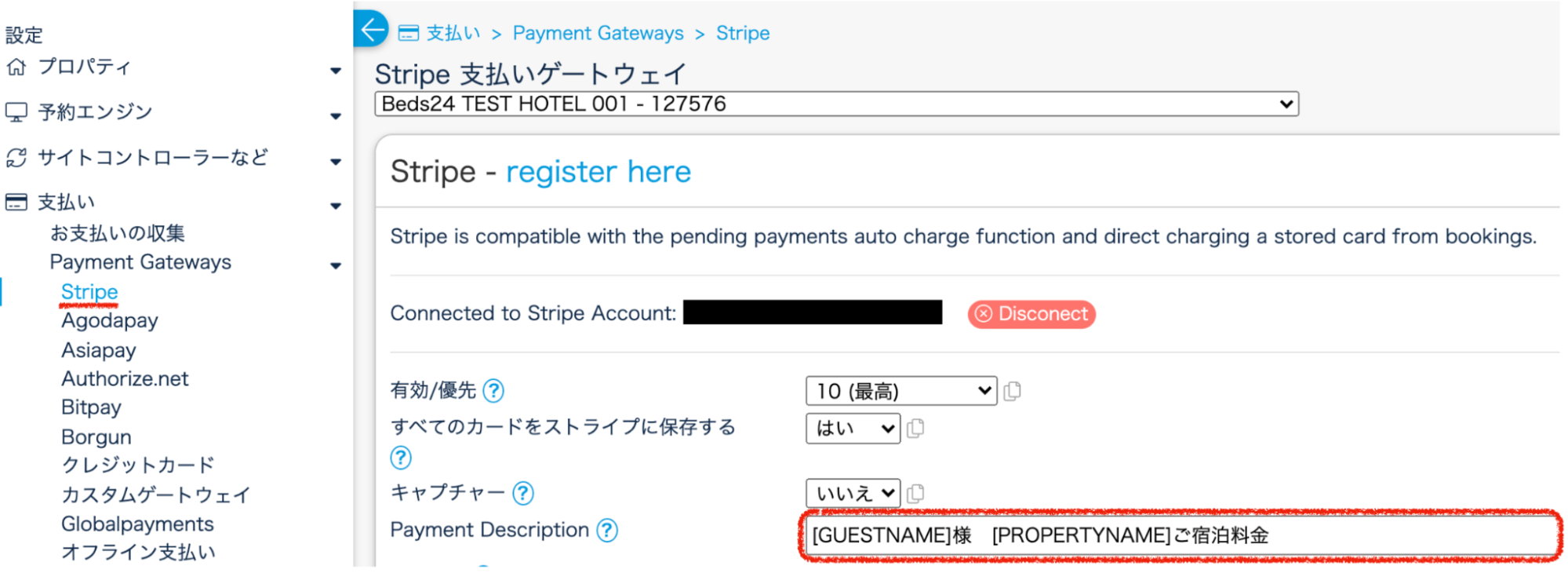 設定 > 支払い > Payment Gateways > Stripe
