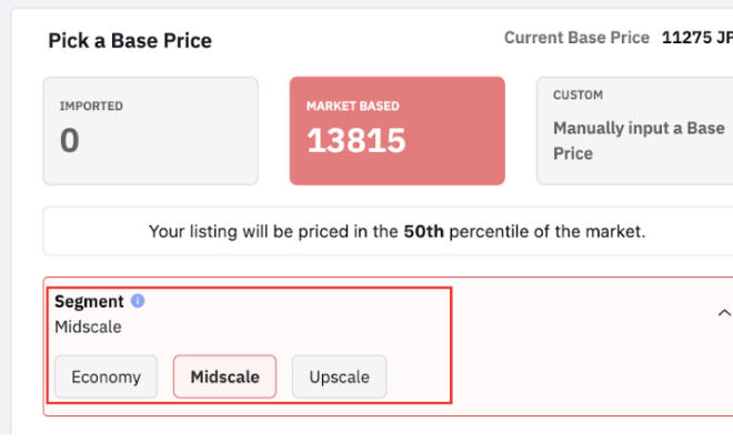 5.・「Segment(物件カテゴリ)」・・ベース価格の希望の設定を選択します。