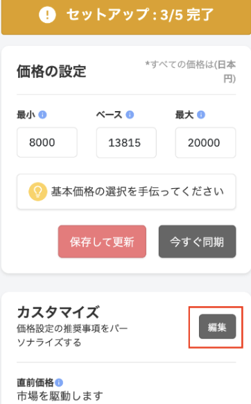 ・設定後、右下の「Confirm Base Price(基本価格を確認する)」ボタンを押すとベース価格が設定されます。