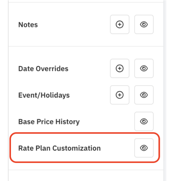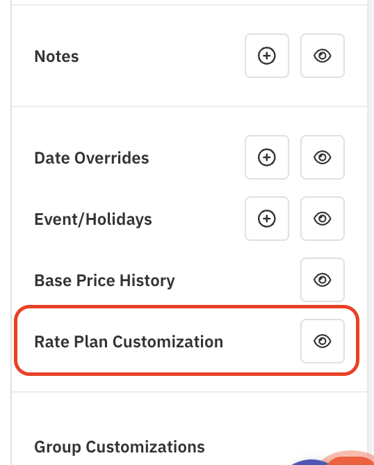 右下の「Rate Plan Customization(料金プランのカスタマイズ)」の目マークをクリックします。