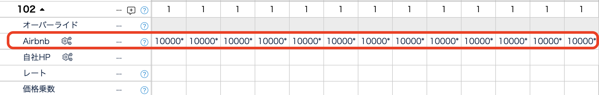 1.Beds24カレンダーでPricelabsの価格を流されたい日別料金の行に、1年間任意の価格を入力してください。
