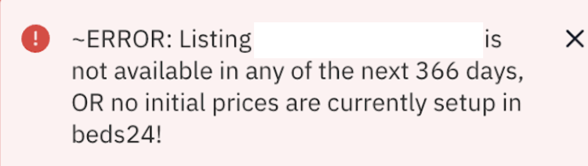 日別料金に価格が入っていない場合、PriceLabsから価格を流す際にエラーが発生します。
