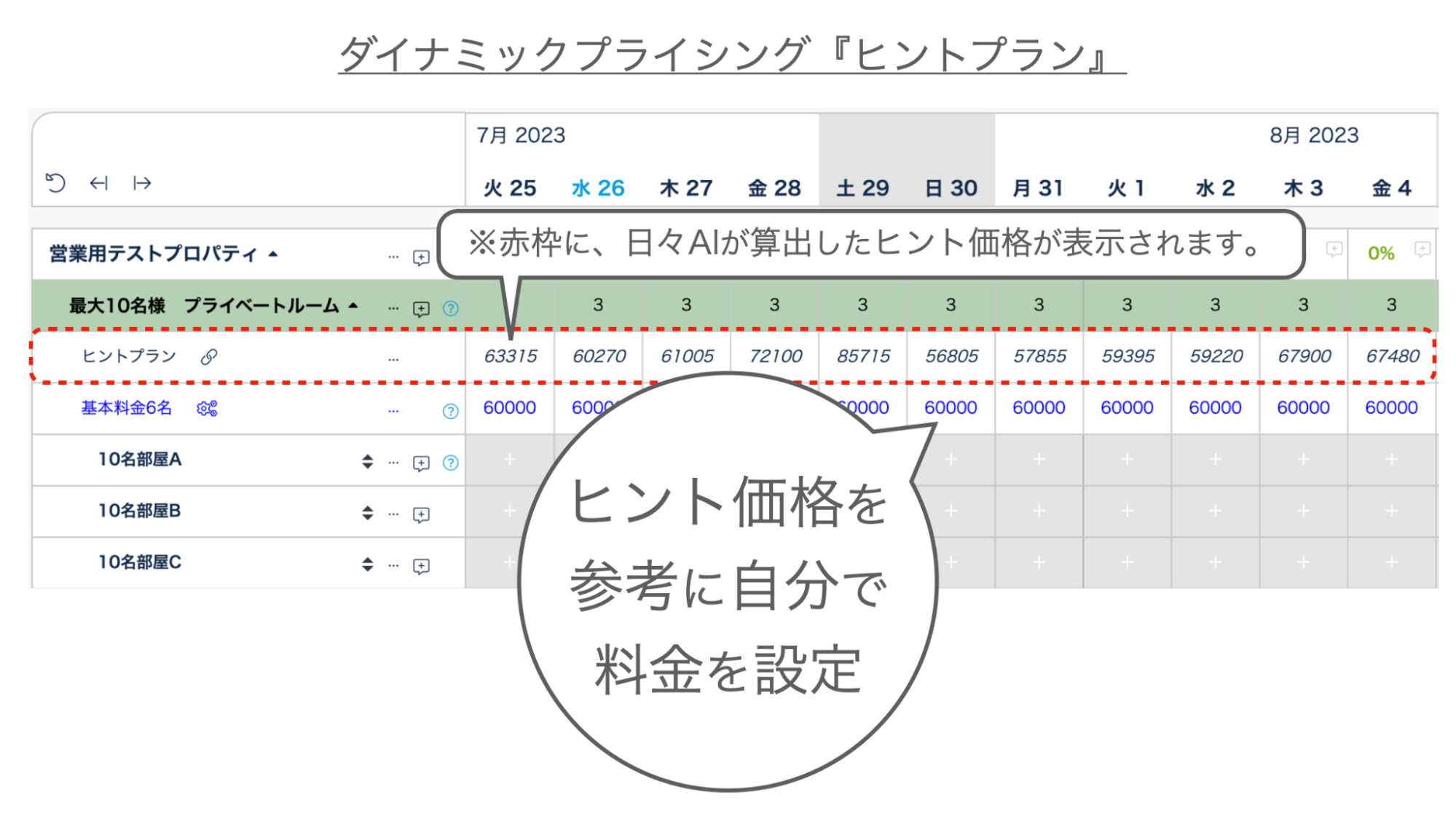AIが競合施設やイベントのデータをもとに、最適な価格を算出します。
